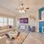 Inside, you’ll find a bright, open layout featuring elevated tile flooring in all living areas, primary bedroom, and bathrooms. The kitchen is a standout with painted cabinets, upgraded granite countertops, and a counter-height bar, perfect for casual dining or entertaining. Additional interior updates include plantation shutters throughout, upgraded lighting, and a renovated fireplace and office (2020). Both bathrooms were completely remodeled in 2025, blending modern design with comfort and functionality.