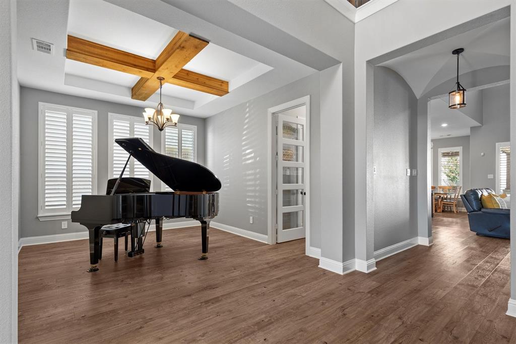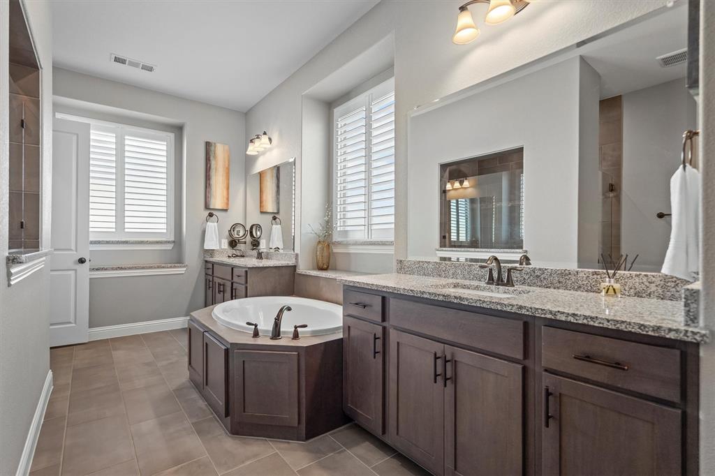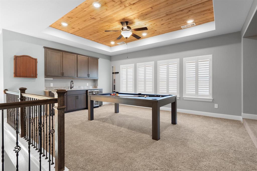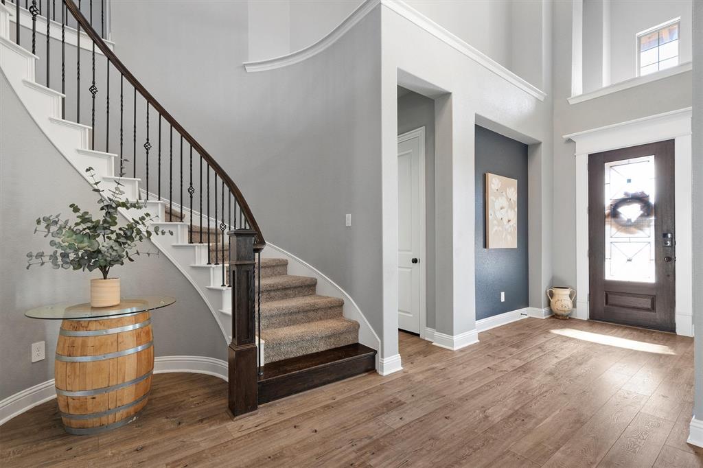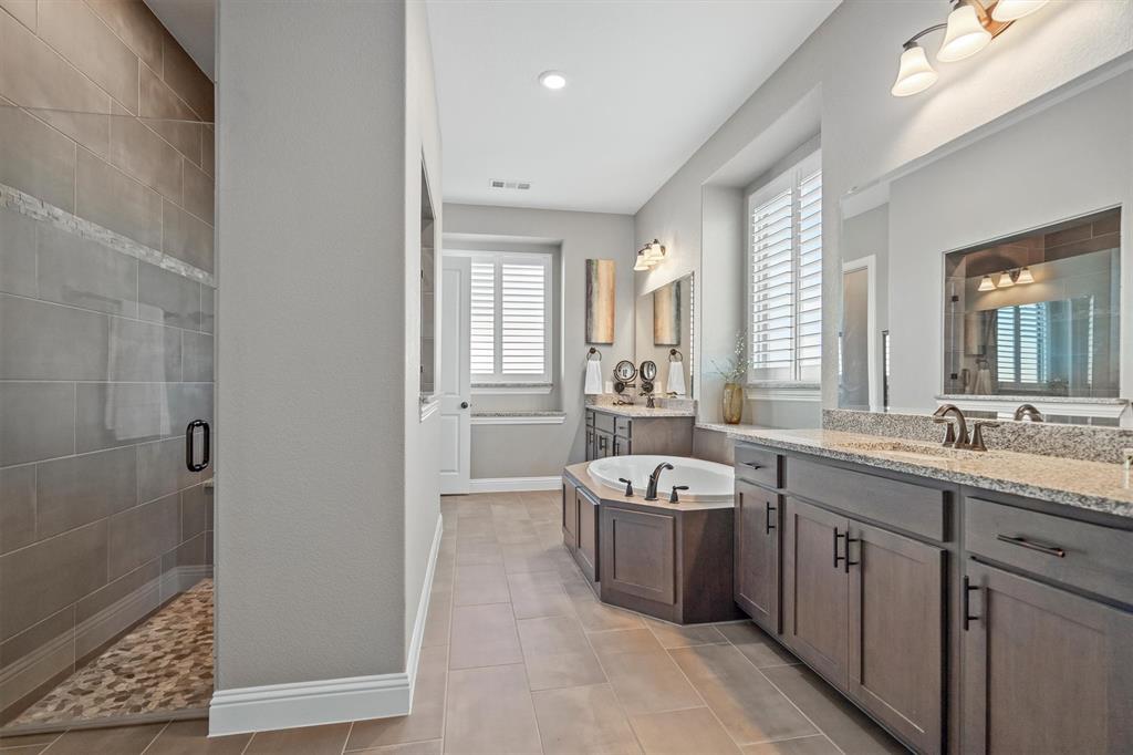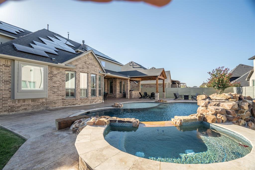 Welcome home! This expansive two-story gem is nestled in the highly sought-after Harvest Community and zoned to top-rated Argyle ISD, perfectly situated on a spacious corner lot. From the moment you arrive, you're greeted by a professionally landscaped front yard, programmable outdoor lighting, and a charming front porch, ideal for peaceful mornings or relaxing evenings. Inside, enjoy a dedicated home office with custom built-ins—perfect for remote work or study. The open-concept living area offers generous space for gathering and flows seamlessly into an oversized chef’s kitchen with a large island, breakfast bar, farmhouse sink, pot filler, double ovens, and a sunlit breakfast nook. Retreat to the luxurious primary suite featuring a spa-like bath and walk-in closet with direct access to the laundry room. A second main-floor bedroom with built-ins provides flexible space for guests , crafts, or multigenerational living. Upstairs, you’ll find a game room with wet bar cabinetry, a separate media room, and three oversized bedrooms with ample closet space.