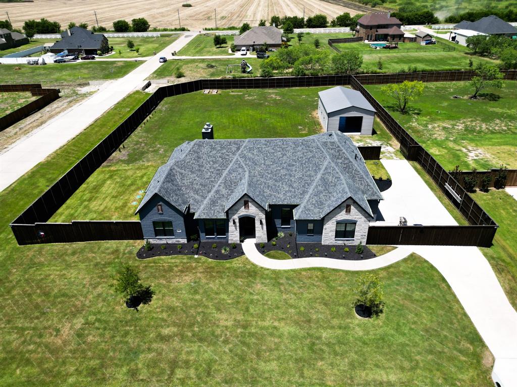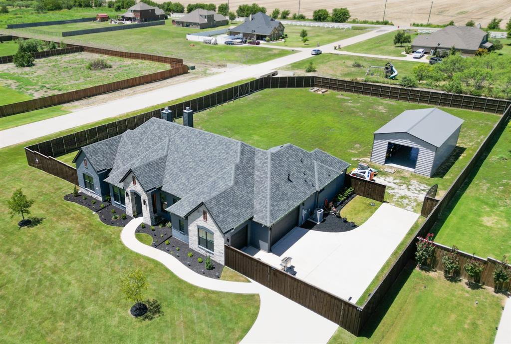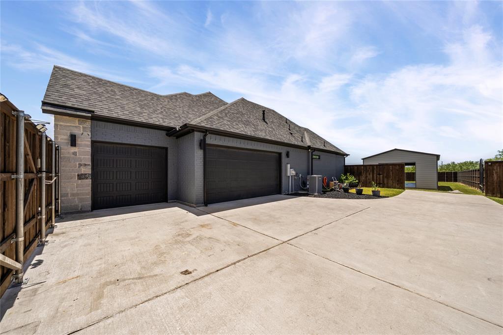 LIKE NEW 3 yr old Elmwood Custom Home! ELEGANT HOME ON ACRE LOT! $55K FENCE AND $45K WORKSHOP ALREADY THERE FOR YOU! THAT'S SAVINGS IN YOUR POCKET! AUTO CURTAINS WITH REMOTE CONTROL! Gorgeous brick, stone and country elevation. THIS HOME SHINES! 4 bed, 3 full bath, 3 car garage! 24'X40' workshop with reinforced concrete and epoxied floor! GOURMET KITCHEN with ISLAND, BREAKFAST BAR and QUARTZ counters, undermounted sink. Double ovens. Built in microwave. Plenty of cabinets. Walk in pantry. 5 Burner GAS COOKTOP! DECORATIVE BACKSPLASH TILE! SS appliances. 8' doors. Luxury fixtures. Spacious living room with cozy gas starting fireplace. Huge Primary Bedroom with Trace ceilings and crown molding, WIC, WALK THRU SHOWER WITH 2 shower heads. Free standing tub. Double separate sinks. Direct access to utility room. REMOTE CONTROL 10' CURTAINS. Tankless water heater. Full sprinklers. 8' BOARD ON BOARD FENCE WITH METAL POSTS and side entry gate! Workshop for the craftsman or mechanic! 24'X40'X12' high walls workshop with reinforced concrete and epoxied floor! 12-gauge framing (upgrade) 26-gauge walls (upgrade, from 29) Front and rear 10x12 roll up door. Approx 2 yr old 18 SEER AC. RV HOOKUP. MULTIPLE 220 OUTLETS RV Hookup - 230V 60A, External run to back of house - 230V 60A, 115V 20A circuit with 2 outlets in the garage.