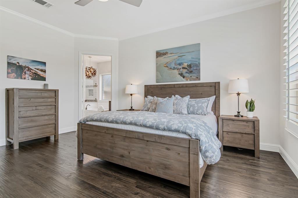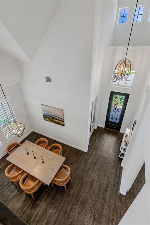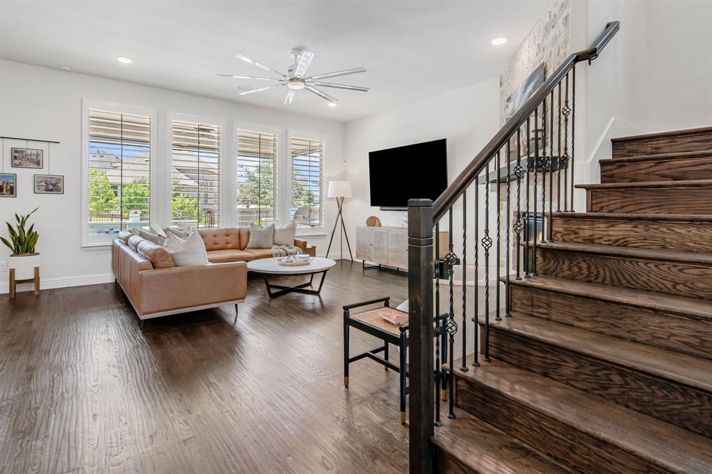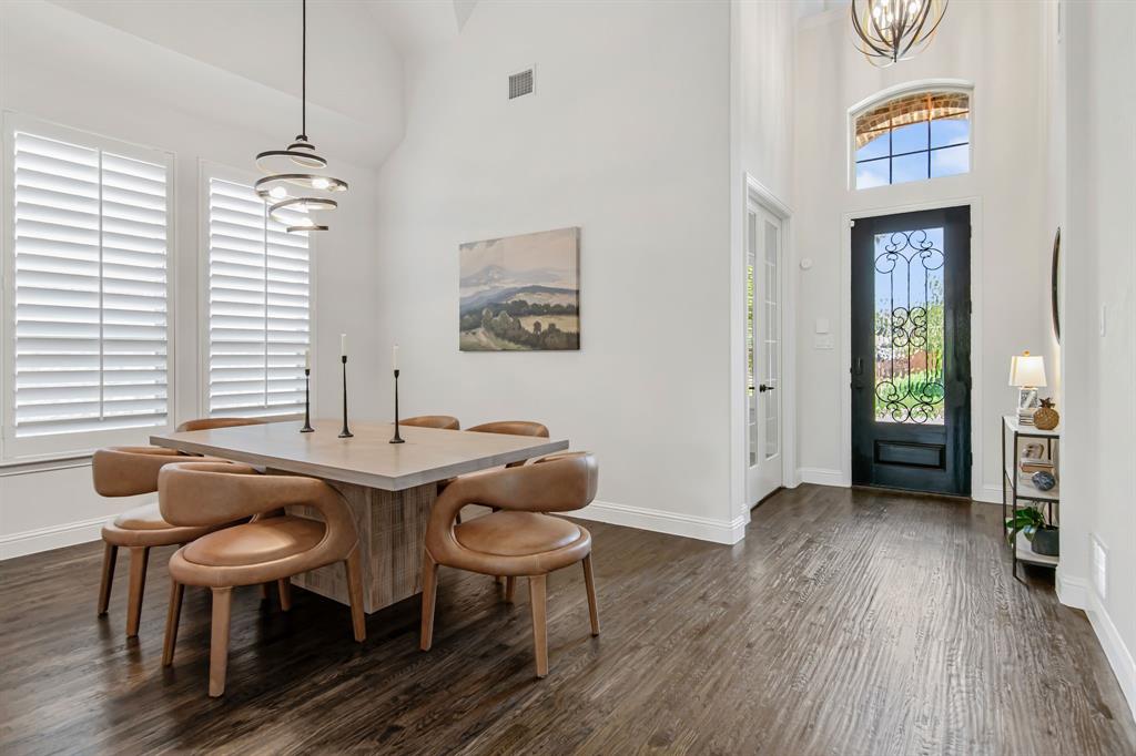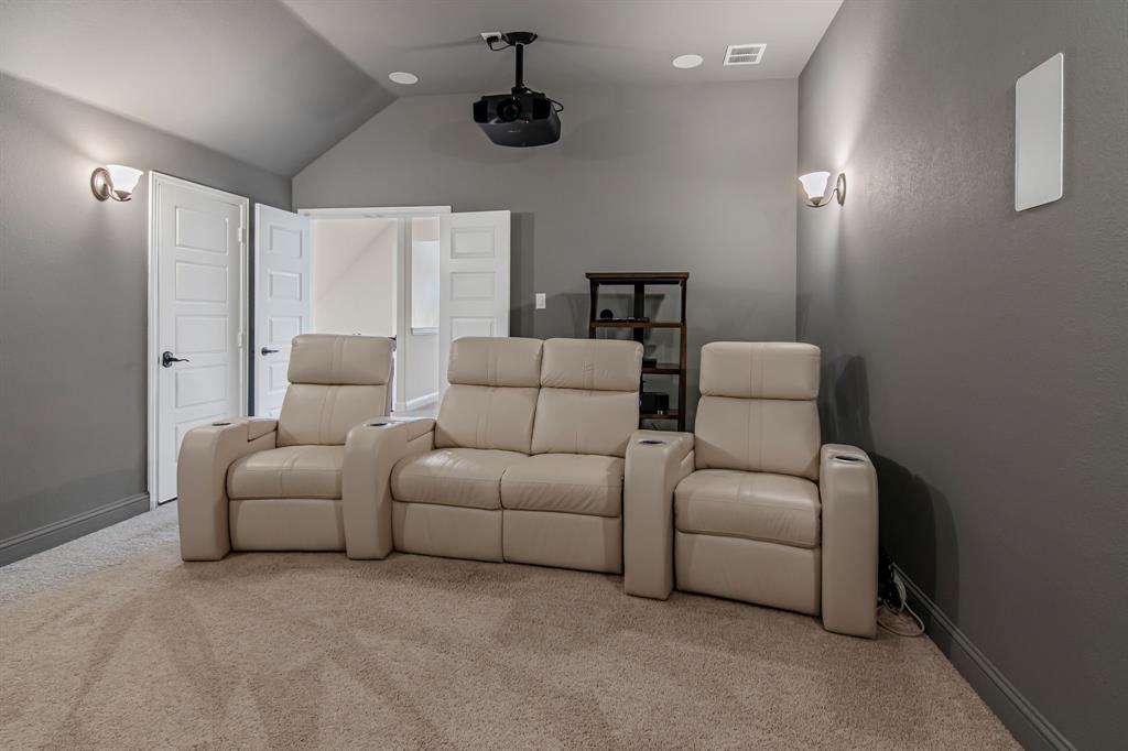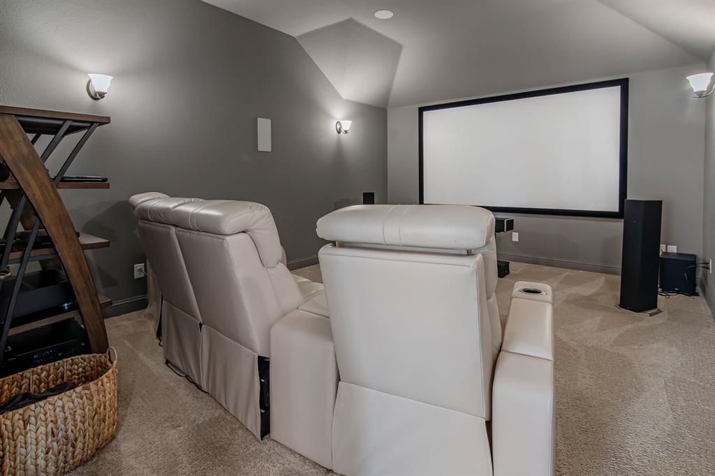 Custom wood plantation shutters, offering both style and privacy. Extensive nailed wood floors throughout the downstairs area add warmth and timeless style. Amazing luxury light fixtures that create an elegant ambiance throughout the home. The media room is ideal for movie nights or game days with family and friends.