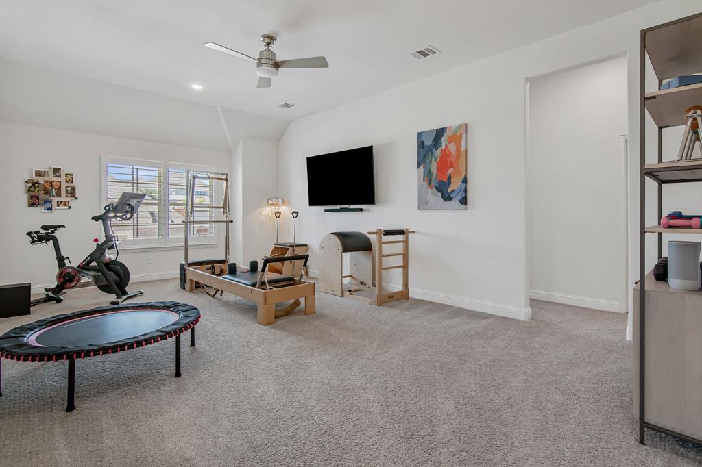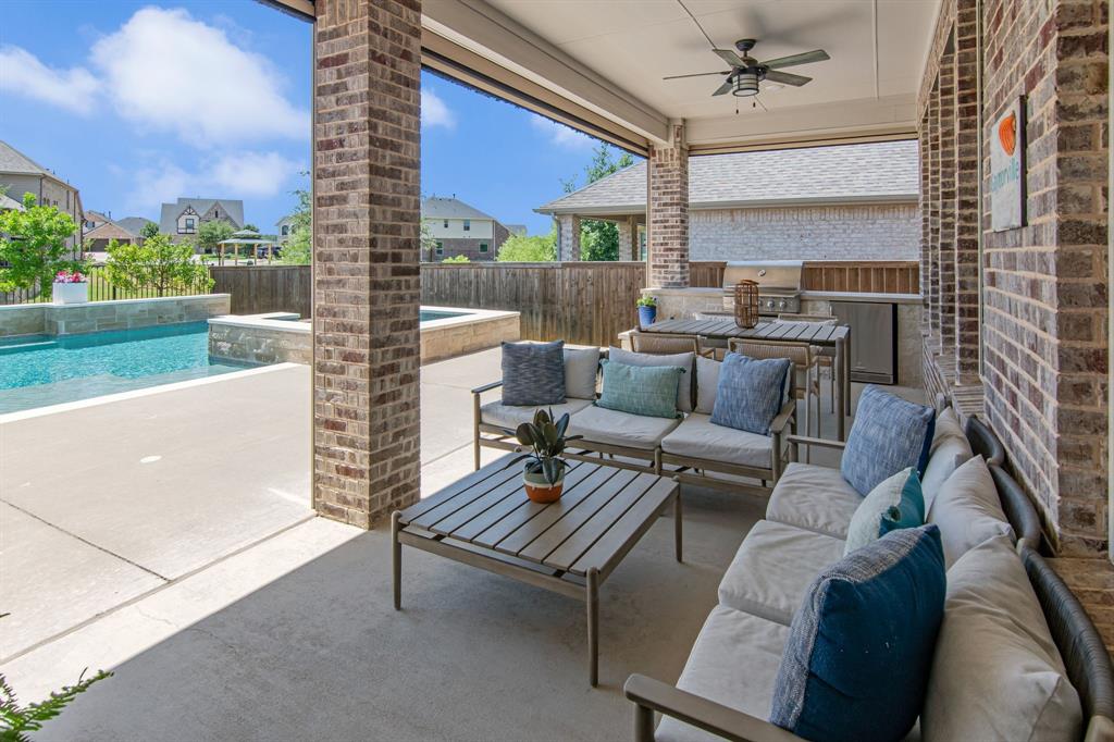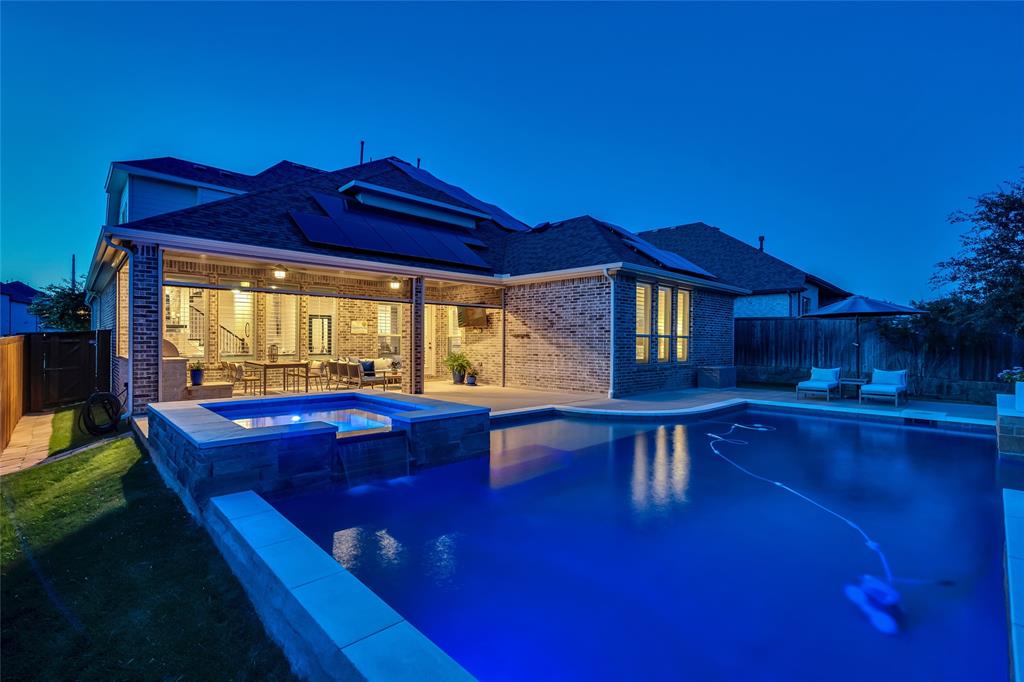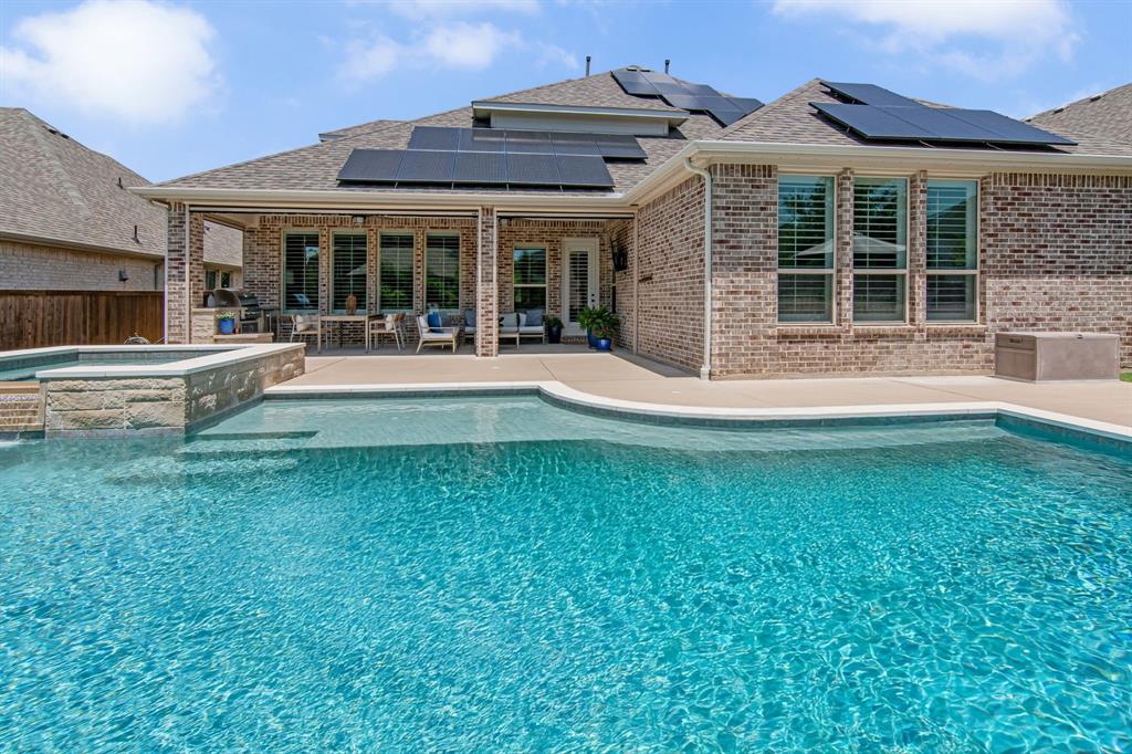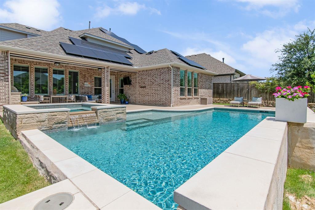 Welcome to quiet luxury living at its finest in Flower Mound with this stunning 5-bedroom, 4-bath estate, meticulously designed for comfort and entertainment. Expansive upgrades throughout! Nestled on a peaceful cul-de-sac and backing to a scenic greenbelt, this home offers the perfect blend of privacy, space, and sophistication. Step outside to your resort-style saltwater pool and spa, with tranquil greenbelt views. Motorized screens on patio for privacy, sun and wind protection. The spacious bedrooms provide an inviting retreat while the Chef’s kitchen, equipped with high-end appliances and ample storage, is a dream for culinary enthusiasts and perfect for hosting gatherings. 33 solar panels PAID OFF! Low energy bills and Smart Home technology.