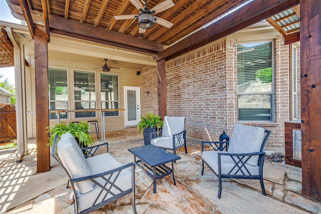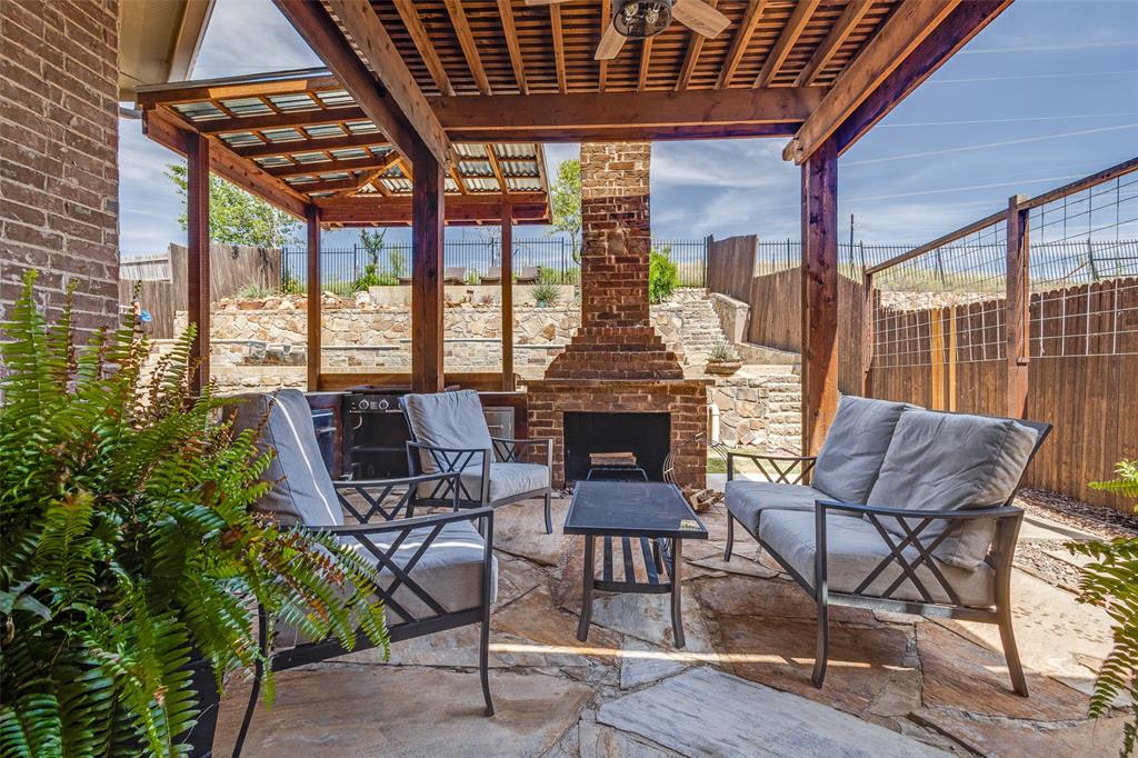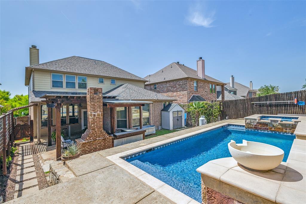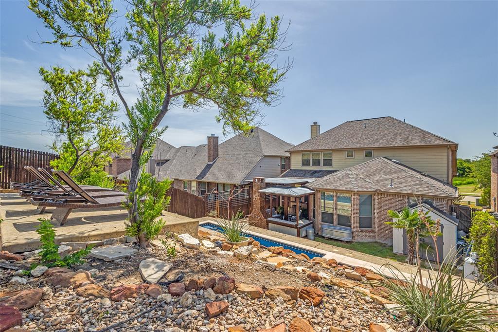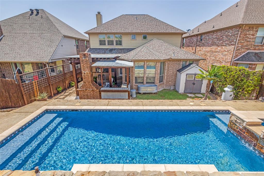Discover this stunning Drees-built home in the desirable Seventeen Lakes community of Roanoke, located in highly rated Northwest ISD. With 4 bedrooms, 3.5 bathrooms, 3,213 sq. ft., this property offers the perfect blend of charm & functionality. From the moment you enter, you’ll notice the unique designer touches, starting with a wide foyer accented by brick herringbone flooring. That same custom brickwork ties seamlessly into the living room fireplace and kitchen island, creating a cohesive look throughout the main level. Hardwood floors add warmth & elegance. The open-concept floor plan is ideal for both everyday living & entertaining. The kitchen features granite countertops, stainless steel appliances, an island & a high bar with seating, plus a breakfast area. A dedicated office & formal dining room offer flexibility for work & gatherings. Adding to the home’s custom feel, the stair risers are finished with decorative herringbone tile, a unique detail that brings extra character to the transition upstairs. The primary suite is privately located on the main floor & features a bay window sitting area & a spa-like ensuite bath. Upstairs includes a large game room, separate media room, two secondary bedrooms with a Jack & Jill bath, & a fourth bedroom with a dedicated full bathroom. Outside, enjoy a tiered backyard retreat with a heated saltwater pool on the middle level & a tanning ledge on the upper tier that backs to a peaceful greenbelt. On occasion, you may even spot grazing cattle at the fence. A large covered patio with a pergola & wood-burning fireplace creates a cozy setting perfect for year-round outdoor living. Seventeen Lakes offers a welcoming, family-friendly lifestyle with two community pools, stocked fishing ponds, walking trails & playgrounds. Just minutes from Old Town Roanoke, Texas Motor Speedway, Hawaiian Falls, Alliance Town Center, & Southlake Town Square. This home has it all - style, upgrades, & a backyard oasis you’ll never want to leave.