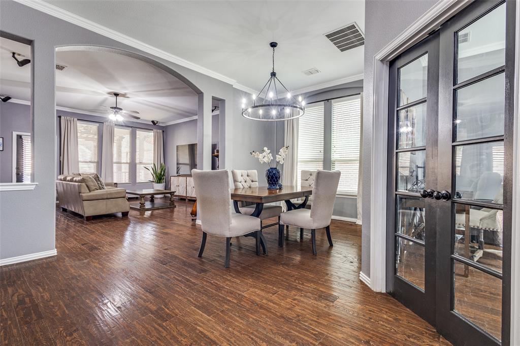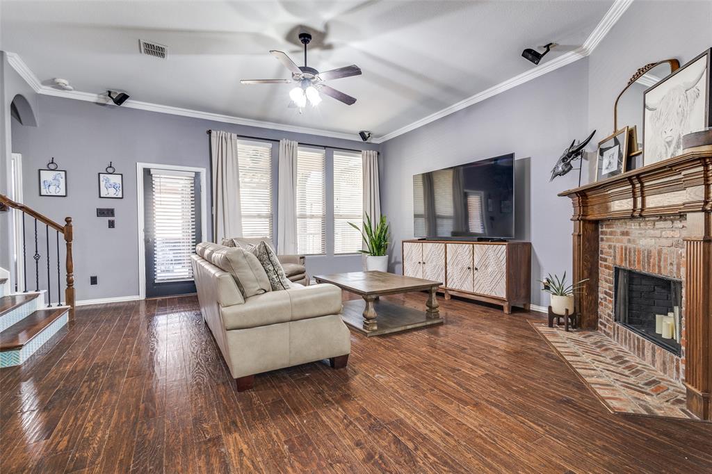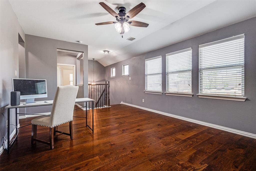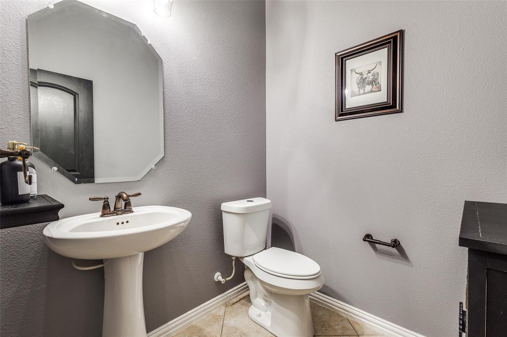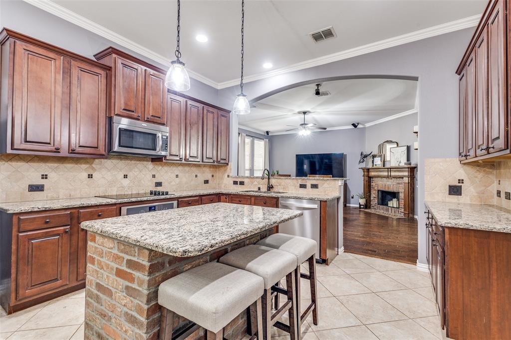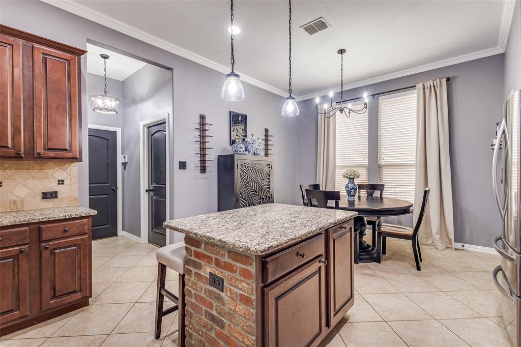Discover this stunning Drees-built home in the desirable Seventeen Lakes community of Roanoke, located in highly rated Northwest ISD. With 4 bedrooms, 3.5 bathrooms, 3,213 sq. ft., this property offers the perfect blend of charm & functionality. From the moment you enter, you’ll notice the unique designer touches, starting with a wide foyer accented by brick herringbone flooring. That same custom brickwork ties seamlessly into the living room fireplace and kitchen island, creating a cohesive look throughout the main level. Hardwood floors add warmth & elegance. The open-concept floor plan is ideal for both everyday living & entertaining. The kitchen features granite countertops, stainless steel appliances, an island & a high bar with seating, plus a breakfast area. A dedicated office & formal dining room offer flexibility for work & gatherings. Adding to the home’s custom feel, the stair risers are finished with decorative herringbone tile, a unique detail that brings extra character to the transition upstairs. The primary suite is privately located on the main floor & features a bay window sitting area & a spa-like ensuite bath. Upstairs includes a large game room, separate media room, two secondary bedrooms with a Jack & Jill bath, & a fourth bedroom with a dedicated full bathroom. Outside, enjoy a tiered backyard retreat with a heated saltwater pool on the middle level & a tanning ledge on the upper tier that backs to a peaceful greenbelt. On occasion, you may even spot grazing cattle at the fence. A large covered patio with a pergola & wood-burning fireplace creates a cozy setting perfect for year-round outdoor living. Seventeen Lakes offers a welcoming, family-friendly lifestyle with two community pools, stocked fishing ponds, walking trails & playgrounds. Just minutes from Old Town Roanoke, Texas Motor Speedway, Hawaiian Falls, Alliance Town Center, & Southlake Town Square. This home has it all - style, upgrades, & a backyard oasis you’ll never want to leave.
