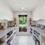 Step inside to a beautifully open floor plan flooded with natural light, anchored by engineered white oak flooring and sleek black aluminum windows. The chef-inspired kitchen is a showstopper featuring custom cabinetry, professional-grade ZLine appliances, a dramatic waterfall-edge island, a butler’s pantry, and a spacious walk-in pantry for optimal storage and function.