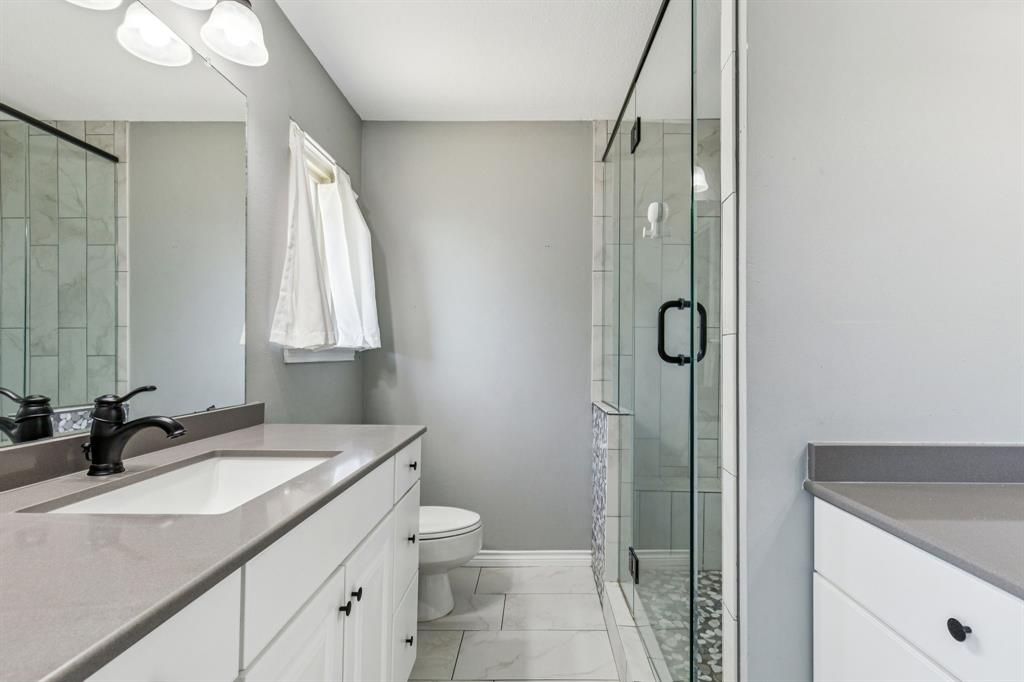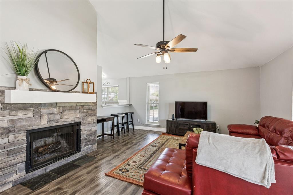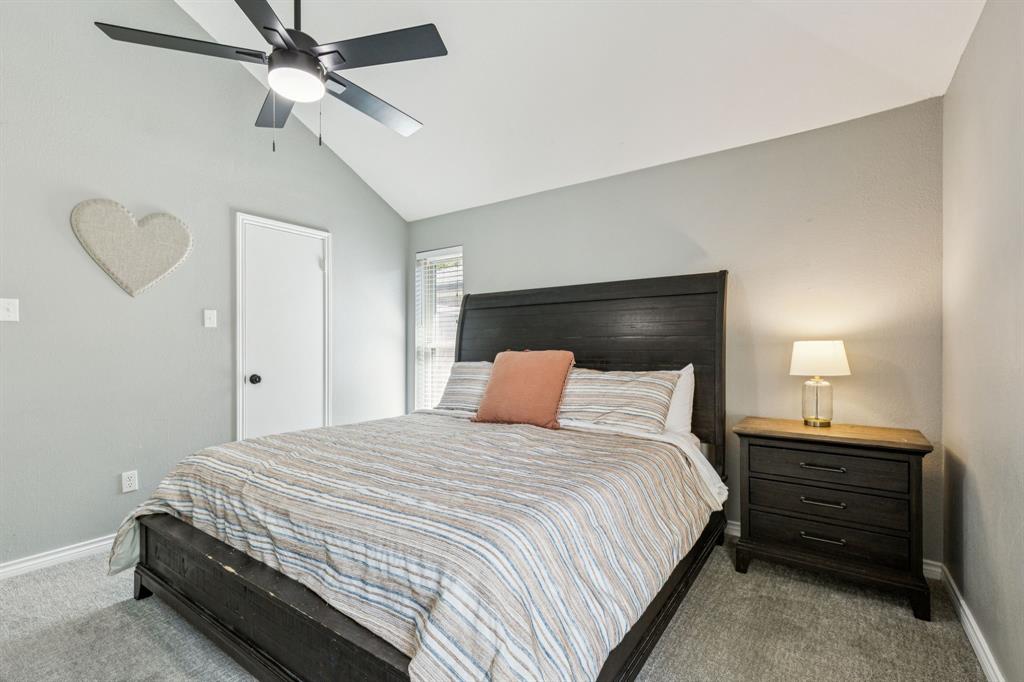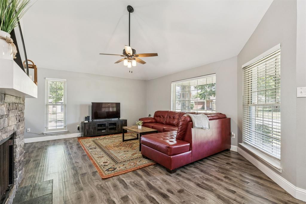 BEAUTIFUL UPDATES! OVERSIZED CORNER LOT! NO HOA! MINUTES TO LEWISVILLE LAKE! ZONED FOR HIGHLY ACCLAIMED LEWISVILLE ISD! Charming and beautifully updated 3-bedroom, 2-bath home nestled on a quiet, oversized corner lot—nearly a third of an acre—in the heart of Lewisville. Enjoy fantastic curb appeal with a well-maintained lawn and mature landscaping. Inside, you'll find fresh paint, soft contemporary tones, updated LVP flooring throughout, and new carpet in the primary and one secondary bedroom. The functional floorplan flows seamlessly from the galley-style kitchen featuring updated quartz countertops, soft-close white cabinetry, a stylish subway tile backsplash, large single basin sink, and Frigidaire Gallery stainless steel and black appliances. A breakfast bar and cozy nook complete the space. The spacious living room boasts soaring ceilings and a wood-burning fireplace with a classic mantle. The primary suite offers a fully renovated bathroom with quartz countertops, updated cabinetry, a designated makeup vanity, and a luxurious oversized shower with bench seating and custom tile and stone surround. Secondary bedrooms are generously sized, both with ceiling fans. Step outside to a huge backyard perfect for pets, play, and entertaining, with an open patio ideal for BBQs. Zoned to highly acclaimed Lewisville ISD and just minutes from Lewisville Lake, shopping, and dining.