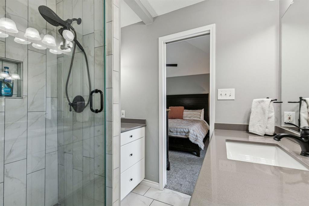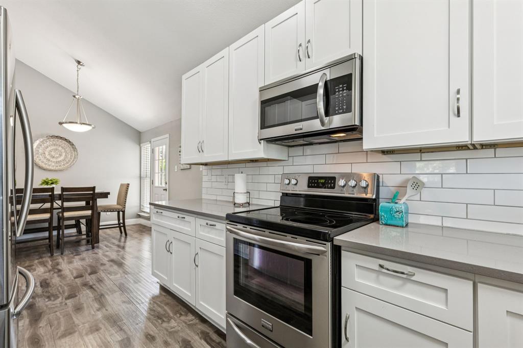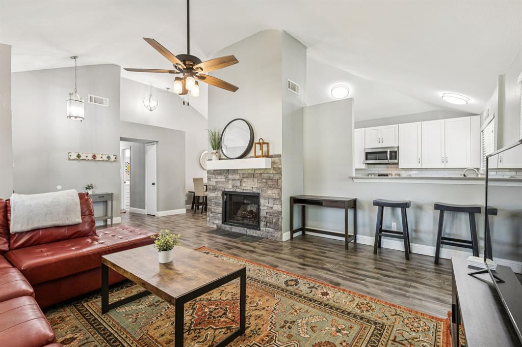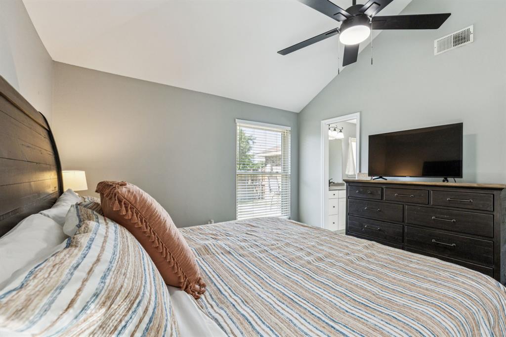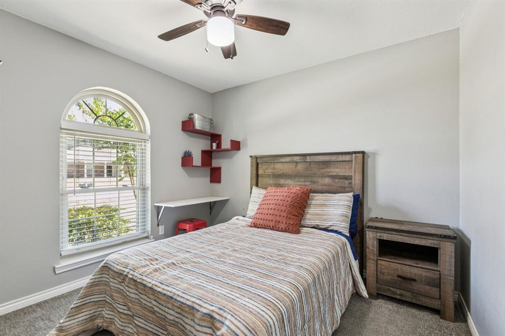 BEAUTIFUL UPDATES! OVERSIZED CORNER LOT! NO HOA! MINUTES TO LEWISVILLE LAKE! ZONED FOR HIGHLY ACCLAIMED LEWISVILLE ISD! Charming and beautifully updated 3-bedroom, 2-bath home nestled on a quiet, oversized corner lot—nearly a third of an acre—in the heart of Lewisville. Enjoy fantastic curb appeal with a well-maintained lawn and mature landscaping. Inside, you'll find fresh paint, soft contemporary tones, updated LVP flooring throughout, and new carpet in the primary and one secondary bedroom. The functional floorplan flows seamlessly from the galley-style kitchen featuring updated quartz countertops, soft-close white cabinetry, a stylish subway tile backsplash, large single basin sink, and Frigidaire Gallery stainless steel and black appliances. A breakfast bar and cozy nook complete the space. The spacious living room boasts soaring ceilings and a wood-burning fireplace with a classic mantle. The primary suite offers a fully renovated bathroom with quartz countertops, updated cabinetry, a designated makeup vanity, and a luxurious oversized shower with bench seating and custom tile and stone surround. Secondary bedrooms are generously sized, both with ceiling fans. Step outside to a huge backyard perfect for pets, play, and entertaining, with an open patio ideal for BBQs. Zoned to highly acclaimed Lewisville ISD and just minutes from Lewisville Lake, shopping, and dining.
