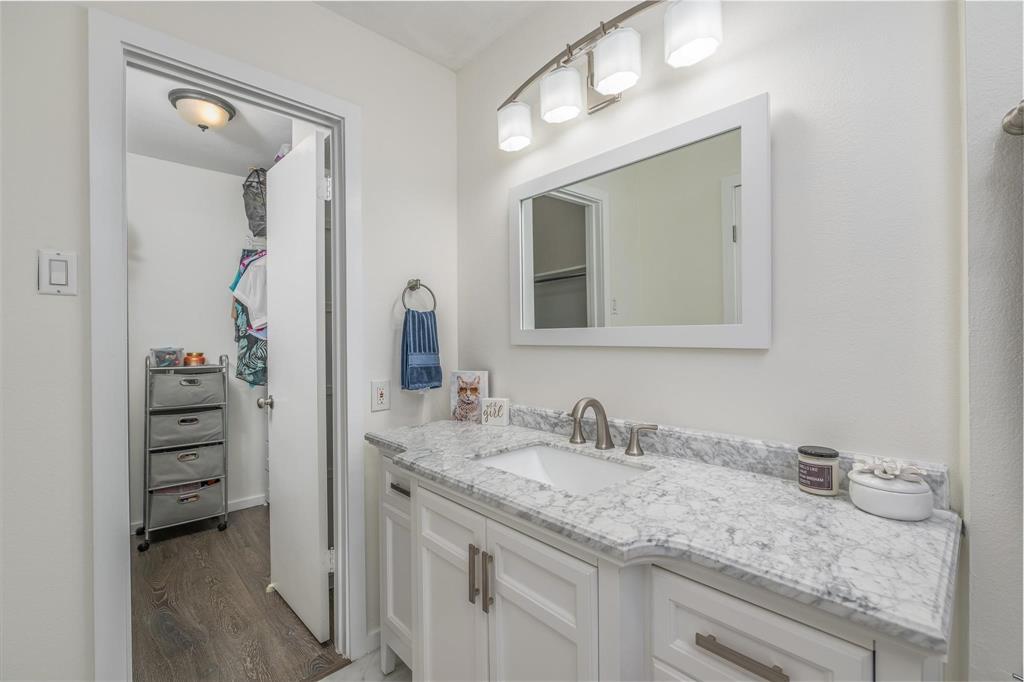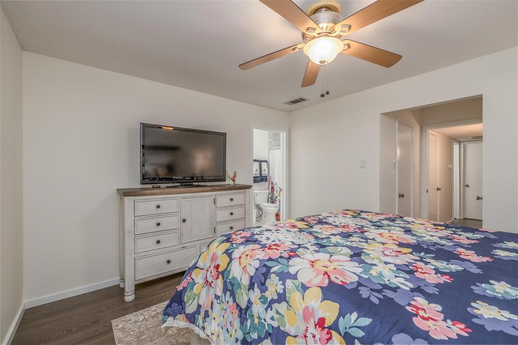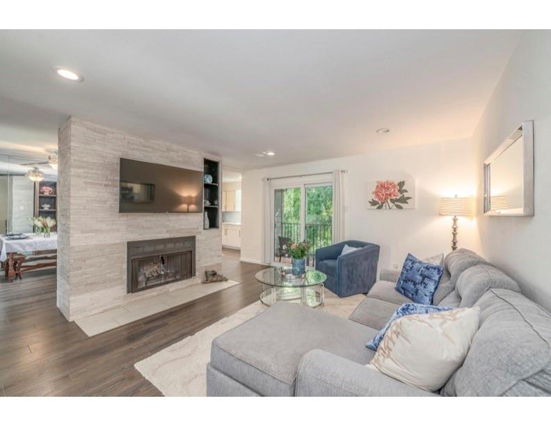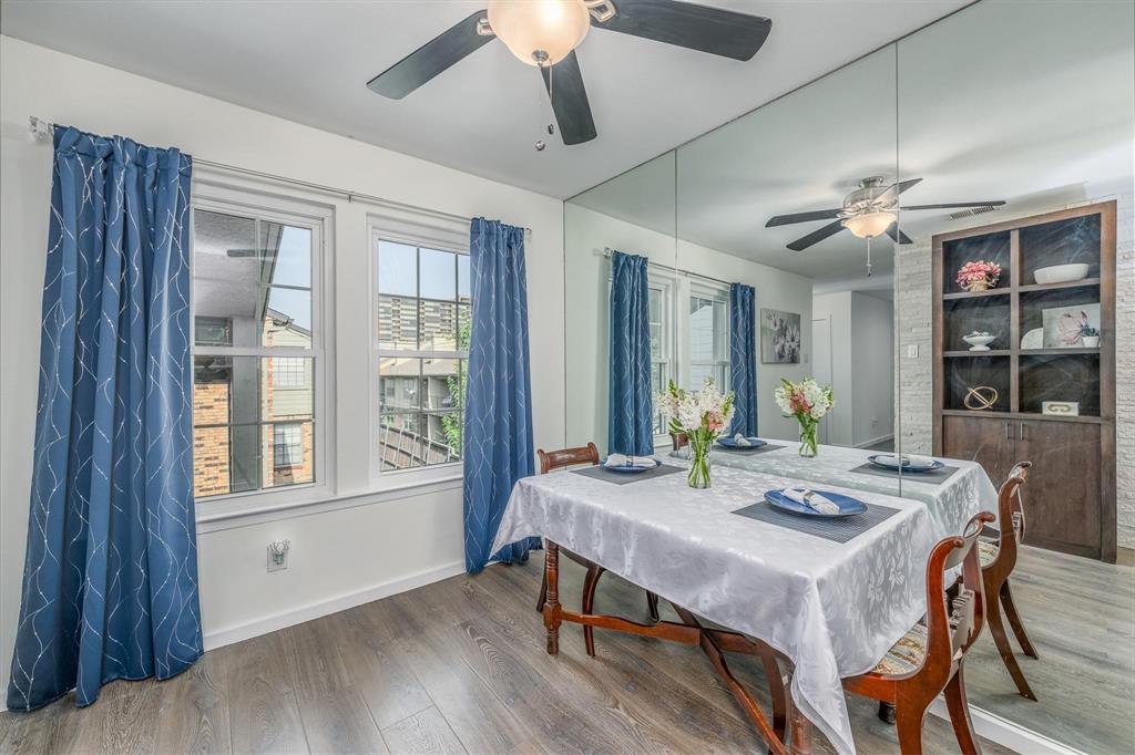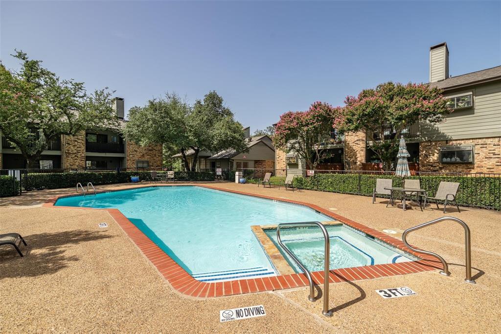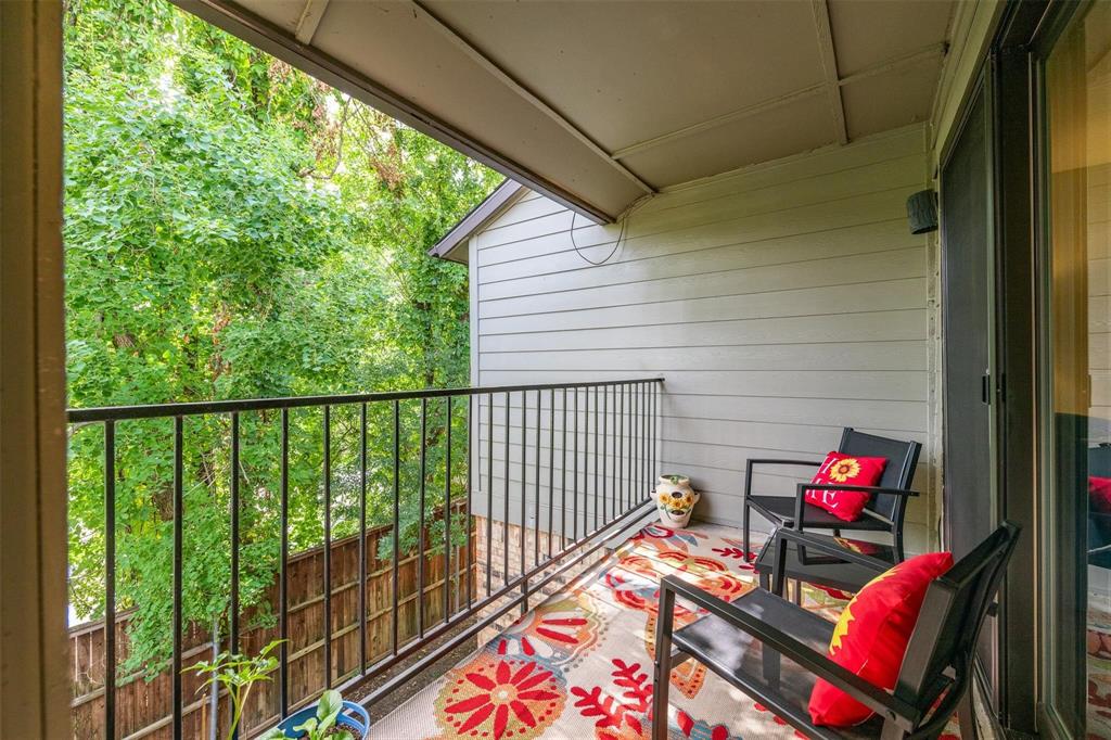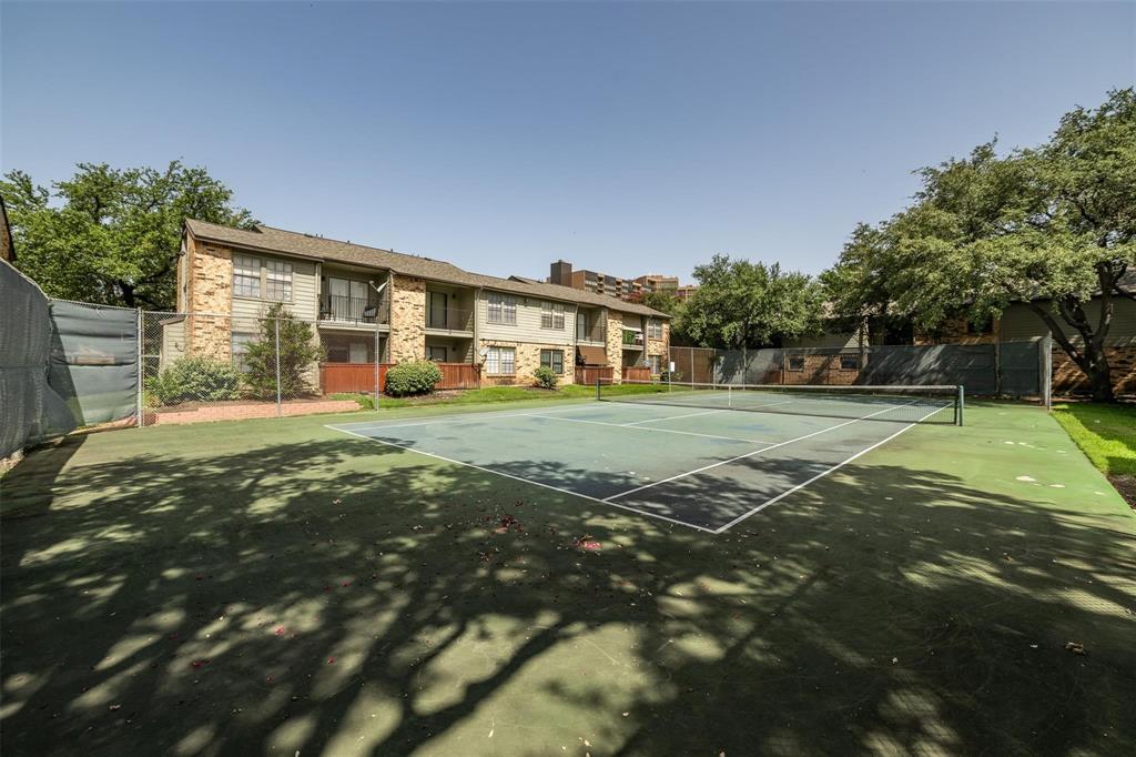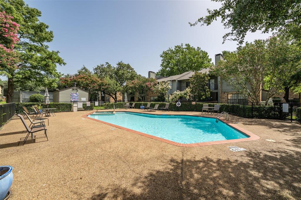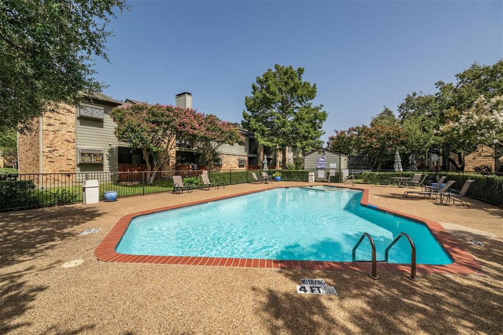 Prime Location in Far North Dallas! Light-filled 2-bedroom corner unit tucked away in a quiet section of the complex. Spacious living area features a beautiful stone fireplace and sliding glass door leading to a private balcony with treetop views. Laminate flooring throughout, with marble in the primary bath. Split bedroom layout offers privacy—primary suite includes 2 large closets. Freshly painted interior with key updates: new attic insulation (2022), new windows and roof (2024). Bonus 5x5 storage area off the utility room. Includes 2 assigned parking spaces (1 covered). Community amenities include pool, tennis court, and clubhouse. Conveniently located near Dallas North Tollway, restaurants, and shopping. Move-in ready and full of charm!