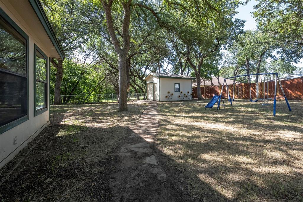 WOW, this is your opportunity to own an affordable 1 story brick home in the highly desirable, well established neighborhood, Spanish Trails!! Within walking distance to Lake Granbury and minutes from schools, dining, shopping and Granbury's historic downtown square. Priced well below market to allow you to to make this one your own! With a little elbow grease, you should have instant equity. Don't forget to ask your lender about a 203(K) rehab loan for larger upgrades! This 3 bedroom, 2 bath home has some fabulous features. There is an enclosed patio that provides flexible living space. It could easily be a game room, play room, office or home gym. Step out back onto the huge patio complete with a fire pit. Enjoy the large gazebo with electricity and gorgeous fenced backyard with tons of mature shade trees. There is also a 10x14 shed that is on a slab with electrical, lights and overhead door that could serve as a great shop or she shed. There is new carpeting, LVP flooring, tons of storage, a cozy fireplace, sprinkler system and water well. The community offers tennis, basketball courts and pool. There is also a private community island with boat launch, fishing dock and picnic pergolas. Whether you are searching for your first home, downsizing or looking for a great investment, this property offers the lifestyle and location that make Granbury such a desirable place to call home. Don't miss an opportunity to live in a neighborhood where lake access, recreation and convenience merge. Call for your private showing today!