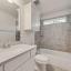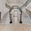 The gourmet kitchen features Shaker cabinetry, Omegastone countertops, a 5-burner gas cooktop with custom vent hood, pot filler, double ovens, stainless steel appliances, and a full-bowl sink. Smart storage solutions include pots and pans drawers and a hidden trash pull-out. A formal living area offers flexibility as a home office or den, and a guest suite on the main level ensures privacy and convenience.