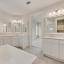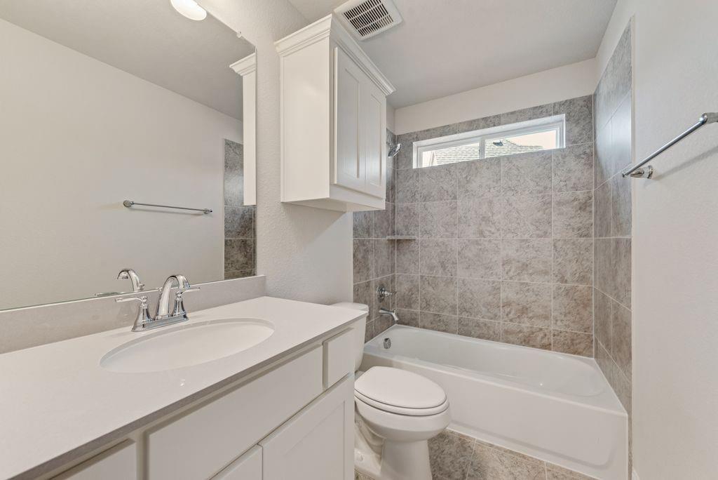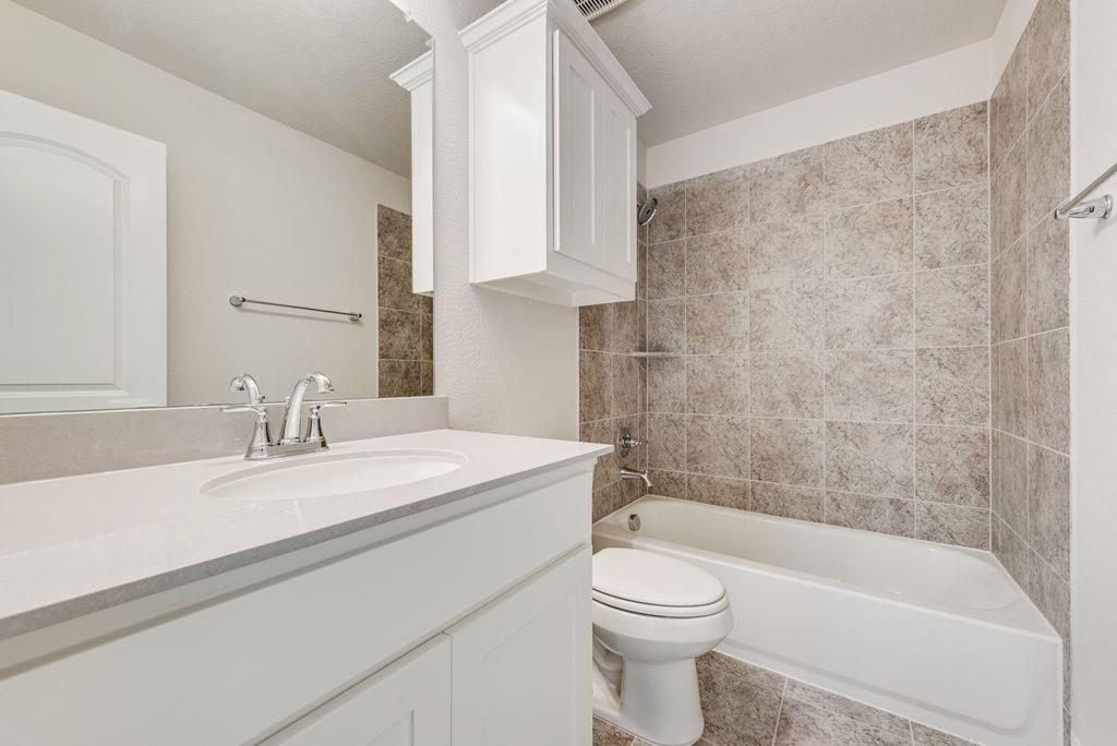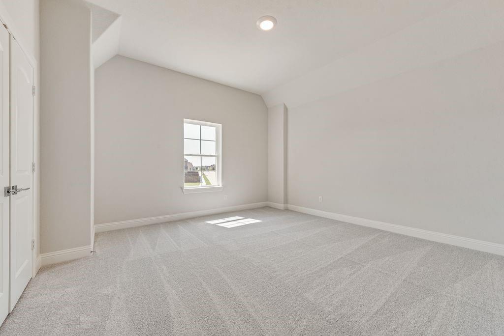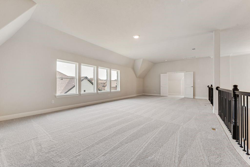 The primary suite is a private retreat with a freestanding tub, dual vanities, and a tiled glass shower. While upstairs, a spacious game room and a media room or children’s retreat, pre-wired for surround sound, offer additional space to relax and unwind.