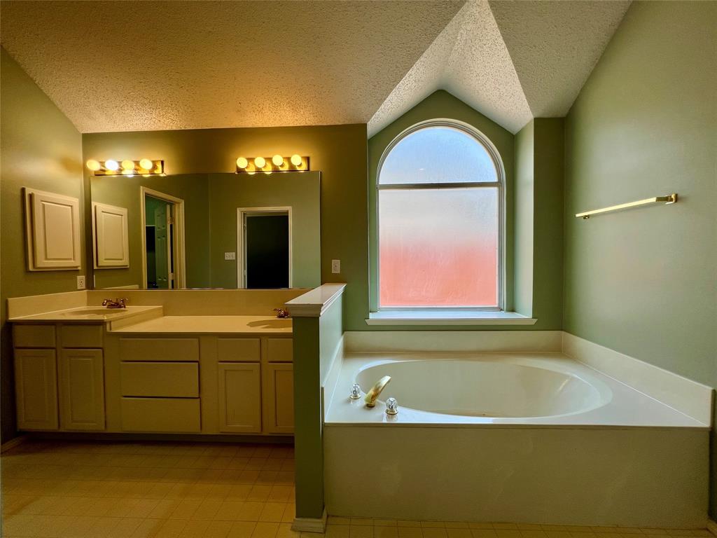 This homes has a lot of great features including the location on a great street across from a greenbelt. Split bedrooms, large living room with vaulted beamed ceiling, wood laminate flooring, kitchen with gas cooktop, spacious master bedroom with a walk in closet, double sinks, soaking tub and walk in shower with bench! Masters Red Oak tree in the front and backyard perfect for providing shade on those hot summer days! Priced to sell for condition!