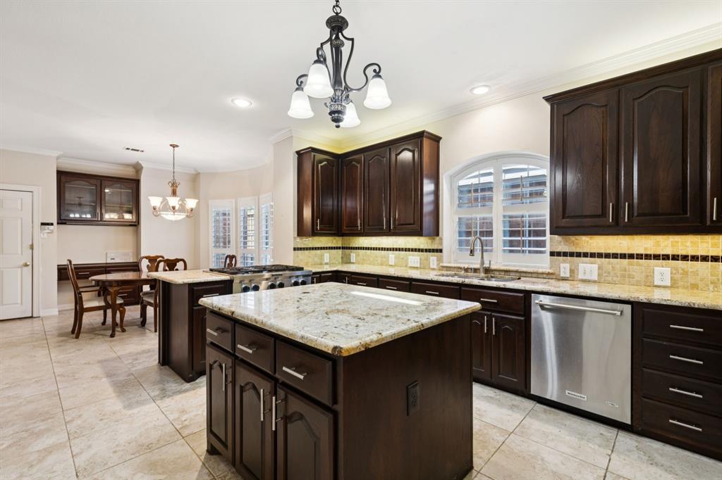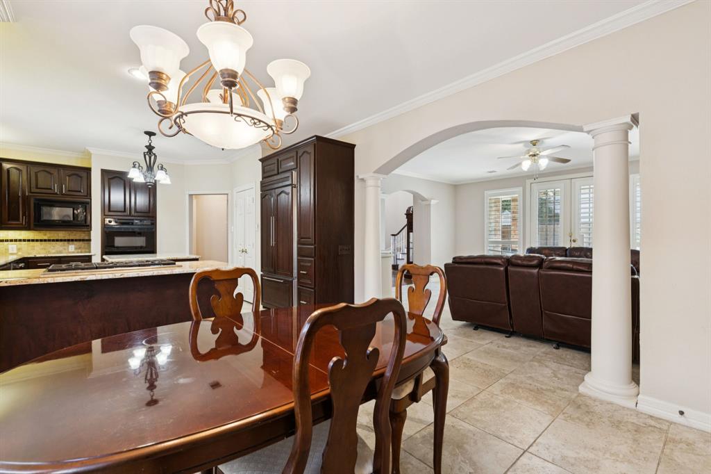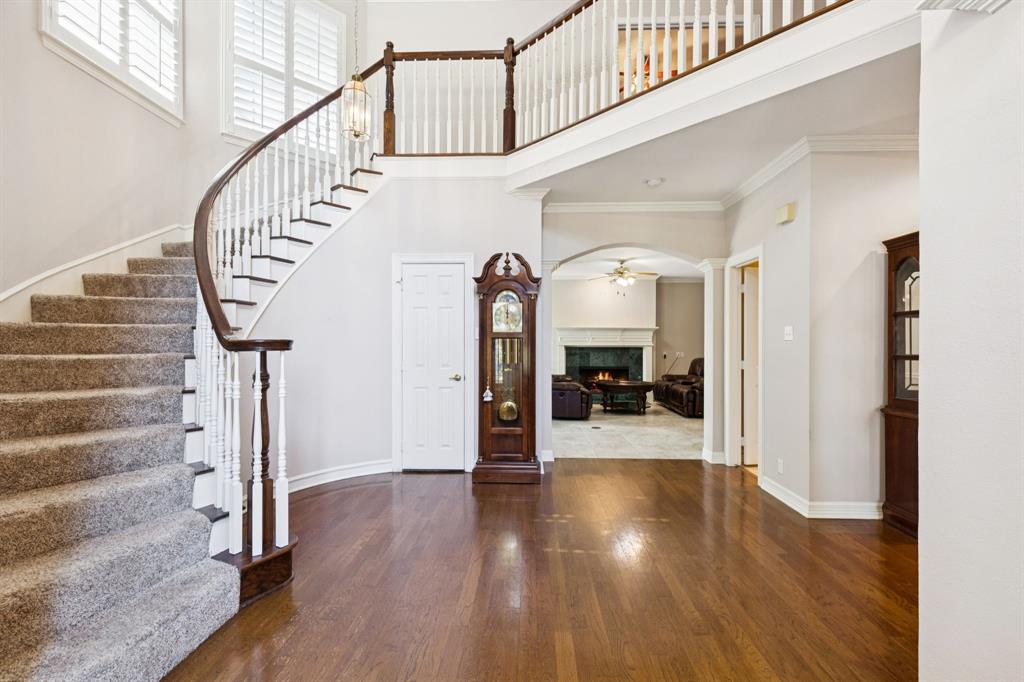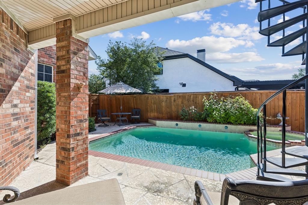 Nestled in the heart of Plano, 3820 Skyline Drive offers an exceptional blend of timeless character and thoughtful updates. This expansive 5-bedroom, 3.5-bath home spans 3,601 square feet and sits in an established neighborhood known for its mature trees and proximity to top-rated schools. From the moment you step inside, you're welcomed by a sweeping staircase, elegant wood flooring, and detailed crown molding that give the entry a sense of grandeur. Fresh paint and tile throughout much of the main level lend a crisp and cohesive feel. The kitchen has been beautifully remodeled with high-end appliances and sleek countertops, offering both form and function for everyday use and entertaining. Plantation shutters add elegance and light control, while recently updated bathrooms feature stylish walk-in showers and modern finishes. The downstairs and upstairs living areas are cooled by three separate Trane variable-speed HVAC systems—installed just four years ago—ensuring year-round comfort in every zone of the home. Upstairs, a spacious media room comes complete with included contents, and a game room opens to a charming balcony that overlooks the backyard oasis. You’ll also discover a hidden bonus room—an ideal retreat or storage space with a touch of whimsy. Step outside to enjoy the tranquil ambiance of the covered patio, outdoor grill and stove, and sparkling pool—creating a private retreat perfect for relaxing or hosting guests. Recent carpet updates and thoughtful improvements throughout make this residence move-in ready while retaining its warm and inviting appeal. With a superb location and a host of luxury touches, this home combines functionality, character, and convenience into a truly compelling package.