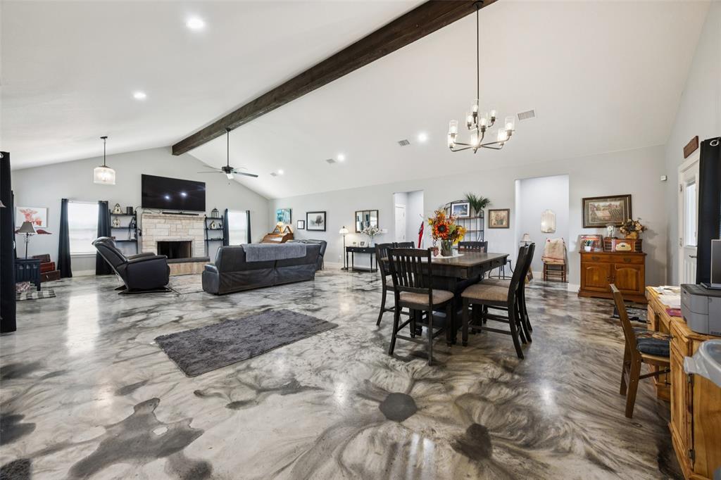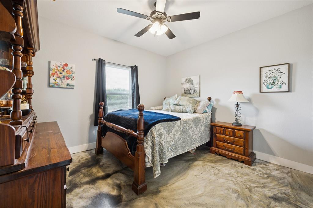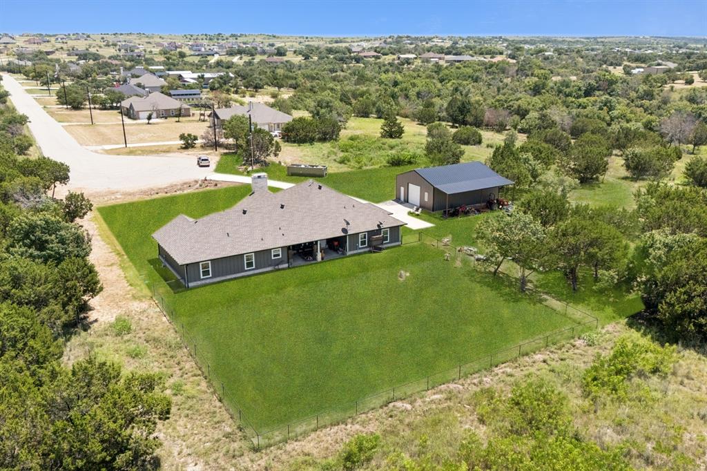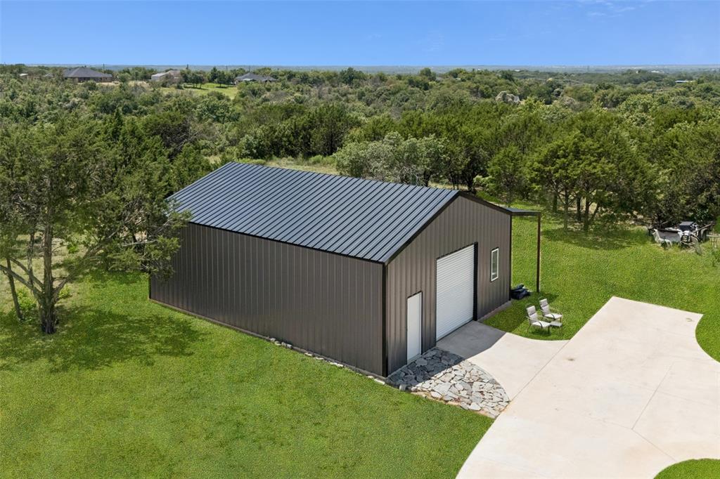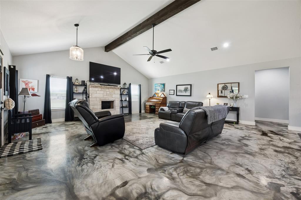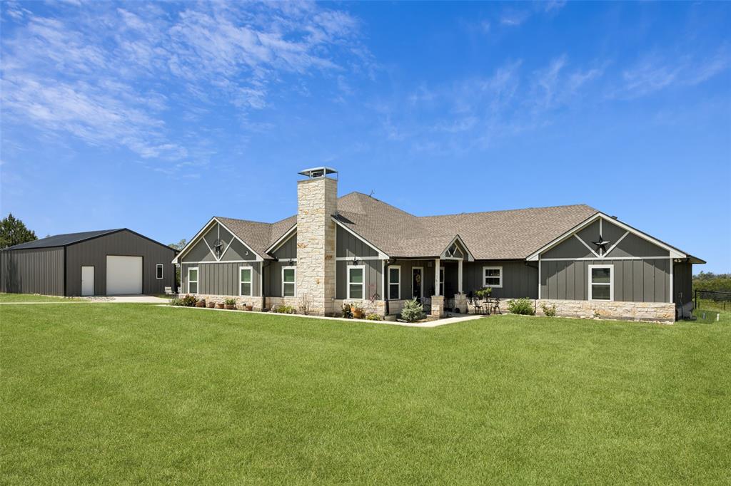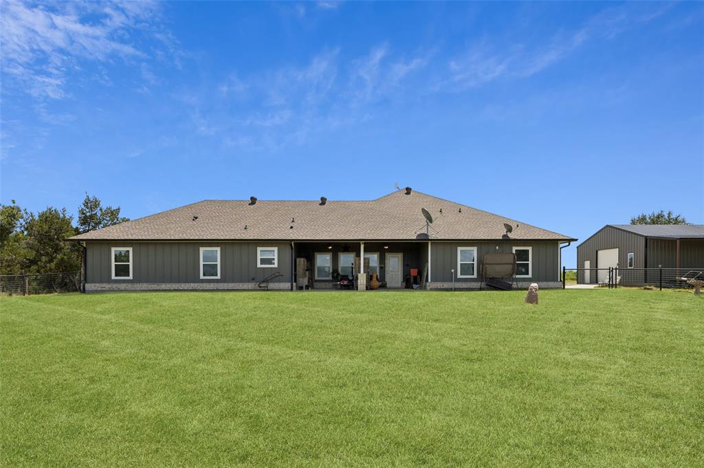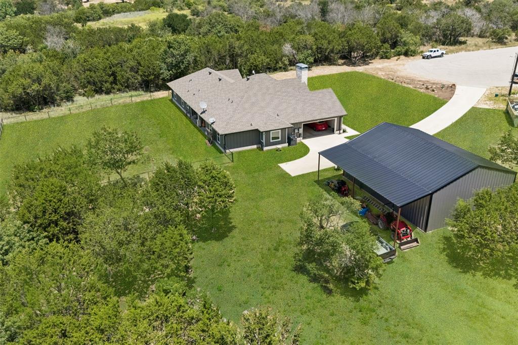 Welcome to your dream sanctuary! This stunning 2.5-year-old custom home sits on 3.77 acres at the end of a quiet cul-de-sac, offering total privacy and gorgeous sunset views. Thoughtfully enhanced with numerous upgrades, the property features all-new gutters, a black-painted pipe fence enclosing the backyard, a 30x40 steel building prepped for a future loft, and a fully automated sprinkler system in the front and partial backyard. A water filtration system has been added for well water. In roof area dampers have been added for better control of heat and air conditioning in extra bedrooms. Cedar trees have been cleared to create a serene path down to a brook—ideal for a future hideaway with a firepit and seating area. No neighbors behind or to the left—this land is all yours. Inside, enjoy the expansive open-concept design with stained concrete floors (baths have other finishes), soaring vaulted ceilings, and a cozy wood-burning fireplace. The gourmet kitchen is a chef’s dream with over 30 cabinets, double ovens, a walk-in pantry, and a massive island with breakfast bar. The oversized primary suite is a spa-like retreat, complete with a luxurious soaking tub, huge walk-in shower, and spacious closet. The large covered back porch with ceiling fans is perfect for outdoor relaxing. Other highlights include a spacious utility room with sink and freezer space, RV-boat parking, security cameras, and room to grow. Dampers in attic that attach to the air conditioning to each room on other side of house to help with circulation of cool and hot air. Electric bill runs at the highest 400 but normally 260 total electric. A rare opportunity to own a peaceful, upgraded country estate!