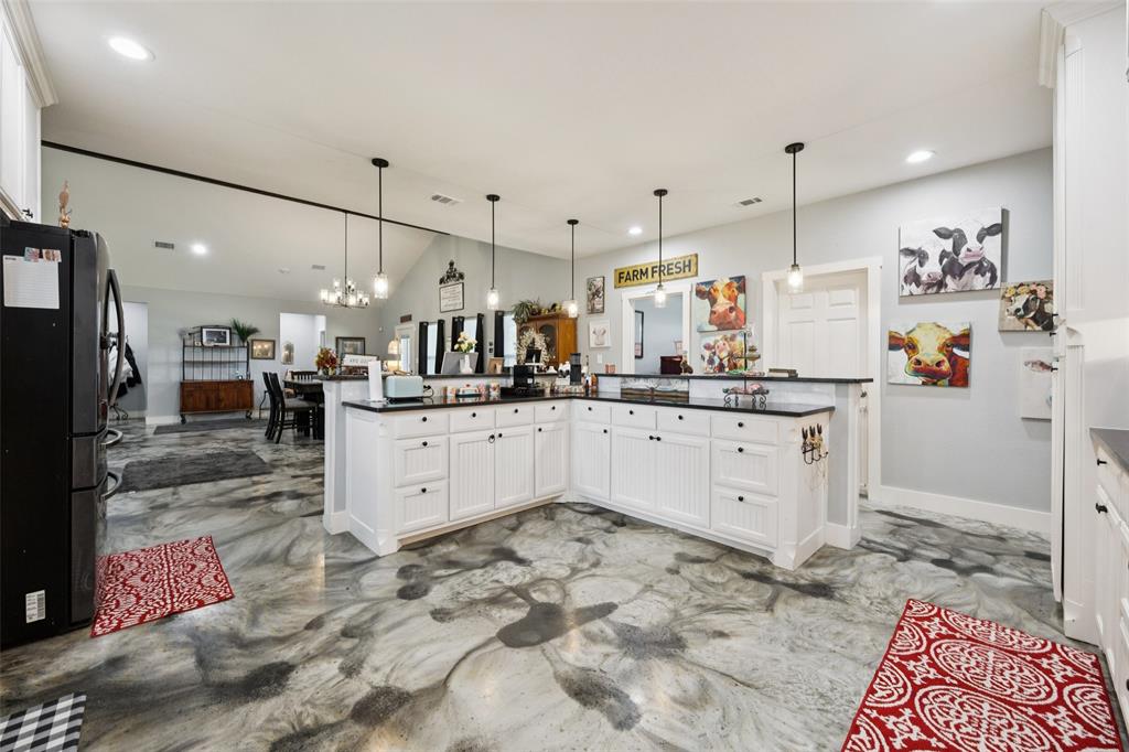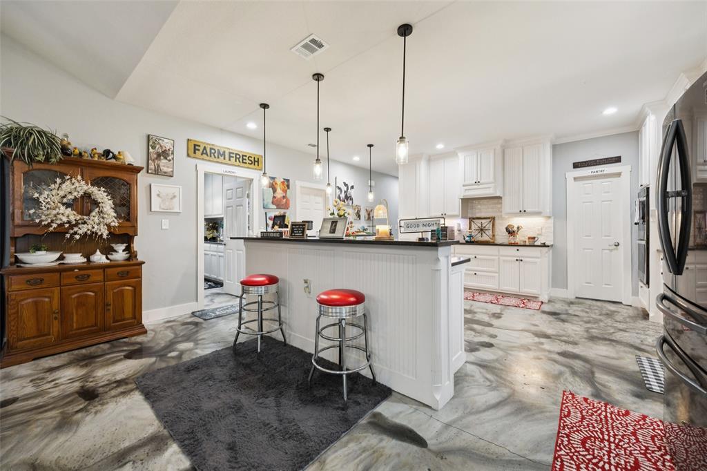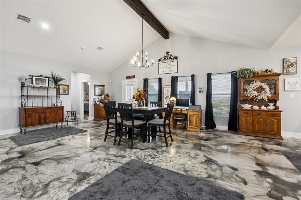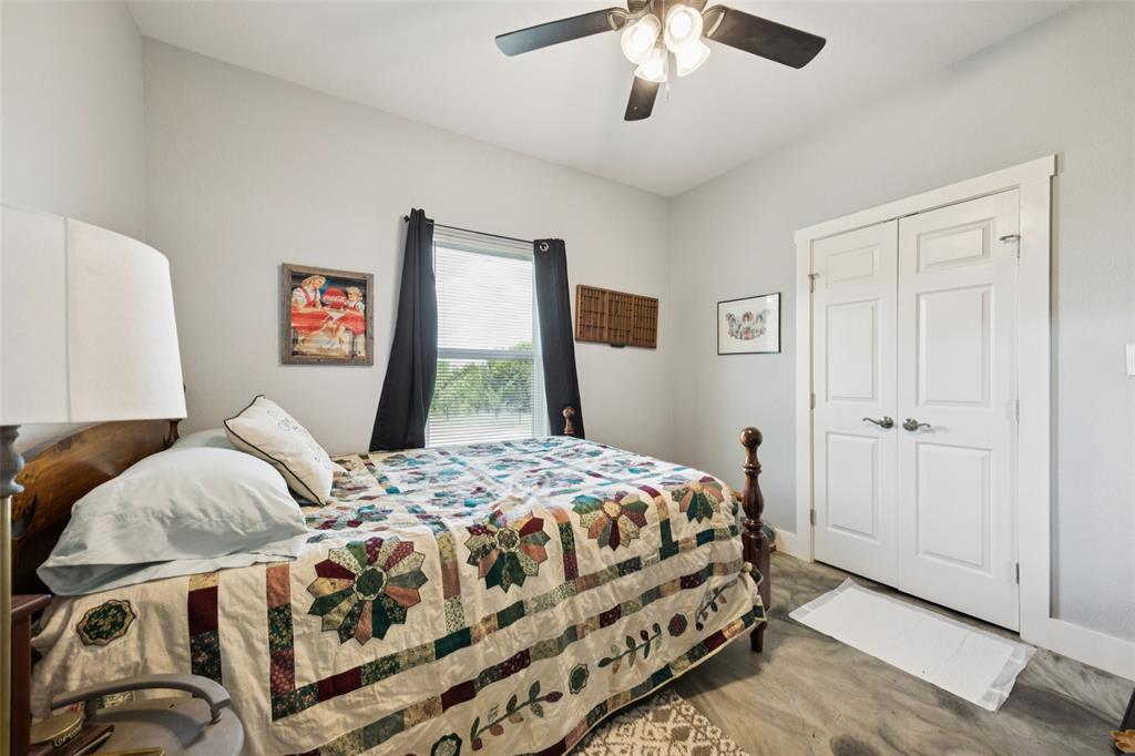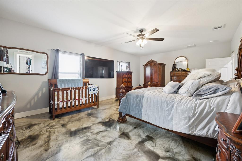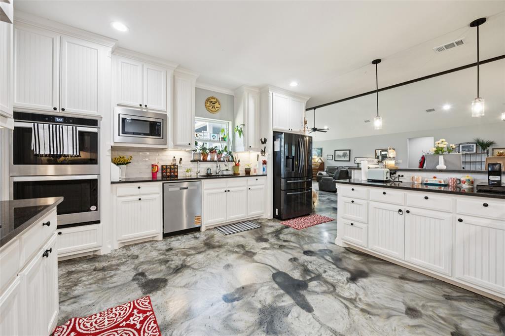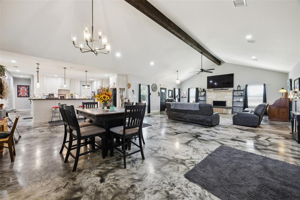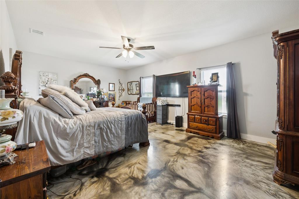 Welcome to your dream sanctuary! This stunning 2.5-year-old custom home sits on 3.77 acres at the end of a quiet cul-de-sac, offering total privacy and gorgeous sunset views. Thoughtfully enhanced with numerous upgrades, the property features all-new gutters, a black-painted pipe fence enclosing the backyard, a 30x40 steel building prepped for a future loft, and a fully automated sprinkler system in the front and partial backyard. A water filtration system has been added for well water. In roof area dampers have been added for better control of heat and air conditioning in extra bedrooms. Cedar trees have been cleared to create a serene path down to a brook—ideal for a future hideaway with a firepit and seating area. No neighbors behind or to the left—this land is all yours. Inside, enjoy the expansive open-concept design with stained concrete floors (baths have other finishes), soaring vaulted ceilings, and a cozy wood-burning fireplace. The gourmet kitchen is a chef’s dream with over 30 cabinets, double ovens, a walk-in pantry, and a massive island with breakfast bar. The oversized primary suite is a spa-like retreat, complete with a luxurious soaking tub, huge walk-in shower, and spacious closet. The large covered back porch with ceiling fans is perfect for outdoor relaxing. Other highlights include a spacious utility room with sink and freezer space, RV-boat parking, security cameras, and room to grow. Dampers in attic that attach to the air conditioning to each room on other side of house to help with circulation of cool and hot air. Electric bill runs at the highest 400 but normally 260 total electric. A rare opportunity to own a peaceful, upgraded country estate!