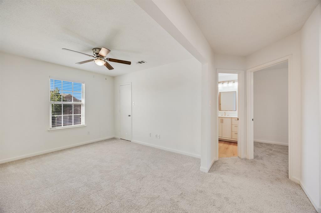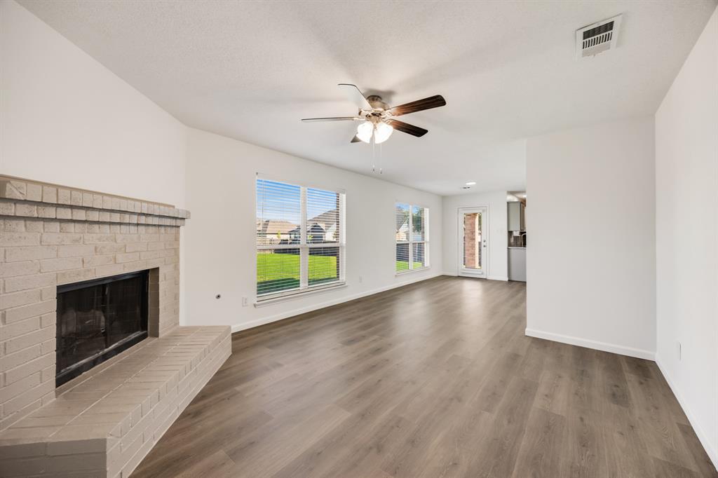 This beautifully updated home features a bright and modern interior with fresh paint and luxury vinyl plank flooring in the main areas, complemented by plush carpet in the bedrooms and upstairs retreat. The kitchen has updated cabinetry, sleek granite countertops, and stainless-steel appliances, providing for a light and bright feel. Enjoy multiple spacious living areas, ideal for relaxation or hosting guests. The bedrooms are generously sized with ceiling fans and walk in closets! The primary suite includes a private bath with a large walk-in shower and a dual-sink vanity. You'll love the oversized laundry room with built-in shelving and hanging space, additional living on the second floor, and the expansive fully fenced backyard! All of this in a well-established neighborhood with nearby community amenities that include a community pool and playground!