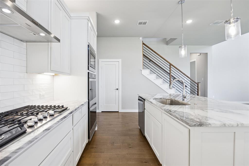Step into this stunning contemporary masterpiece, thoughtfully designed for modern living with comfort, luxury, and functionality in mind. This 5-bedroom, 4.5-bath home spans over 3900 square feet and sits on an expansive lot, offering the perfect space for your outdoor living and entertainment with plenty of room to build your own oasis! The home's striking modern architecture showcases clean lines and modern tasteful finishes! With an open-concept floor plan you will find soaring ceilings and expansive windows, flooding the home with natural light. A spacious living room features a gas fireplace, designer lighting, and seamless flow into the gourmet kitchen and breakfast area. Chef's kitchen features an oversized center island with seating perfect for casual meals. Double ovens, Gas cook-top, Gorgeous tops, designer backsplash, and plenty of storage. Main floor Guest Bedroom with ensuite. Spacious and elegant Master Bedroom easily accommodates a king-sized bed, sitting area, and features views of the backyard. Stunning master bath boasts a walk-in shower, separate vanities with stylish finishes and a calming neutral palette. Head upstairs to a thoughtfully designed entertainment level, where both the game room and media room provide versatile, dedicated spaces for relaxation and fun. The game room is a dynamic and flexible space designed for creativity and connection. Whether you're hosting family game nights, entertaining guests, or just looking for a place to unwind, this room delivers both comfort and excitement. The media room is your private in-home theater experience. Tucked away for optimal sound control and comfort, this room is perfect for movie nights, streaming marathons, and big game viewings. Additional three generously sized bedrooms and two full bathrooms provide comfort and privacy. Located minutes from the DNT, PGA headquarters, Parks, Restaurants & Shopping, you can expect to be impressed!