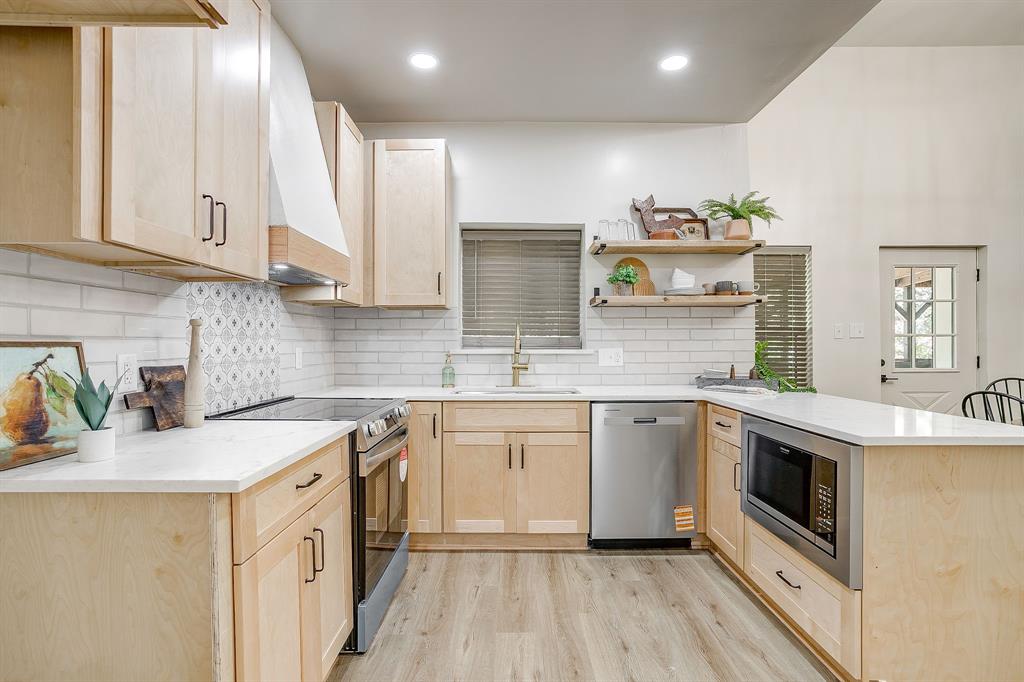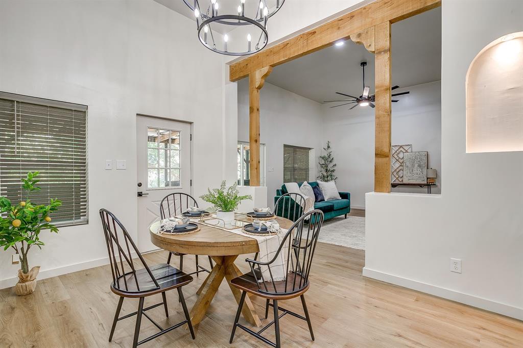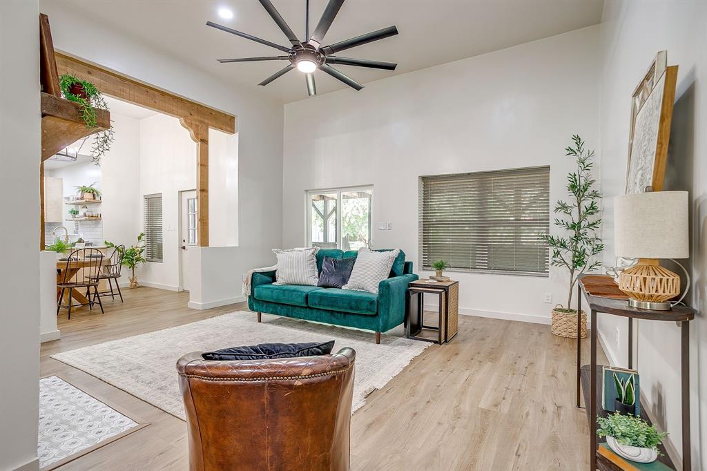 Welcome to 3532 Dove Creek Rd — a beautifully reimagined ranch-style retreat nestled on a peaceful 1-acre lot in the heart of Joshua ISD. This fully remodeled 3-bedroom, 2-bath home offers an inviting blend of modern design and rustic charm. Step inside to soaring ceilings, rich wood beams, and an airy open-concept floor plan that creates a true sense of space and comfort. The kitchen stuns with new cabinetry, sleek quartz counters, a custom backsplash, and open shelving that adds a warm farmhouse flair.