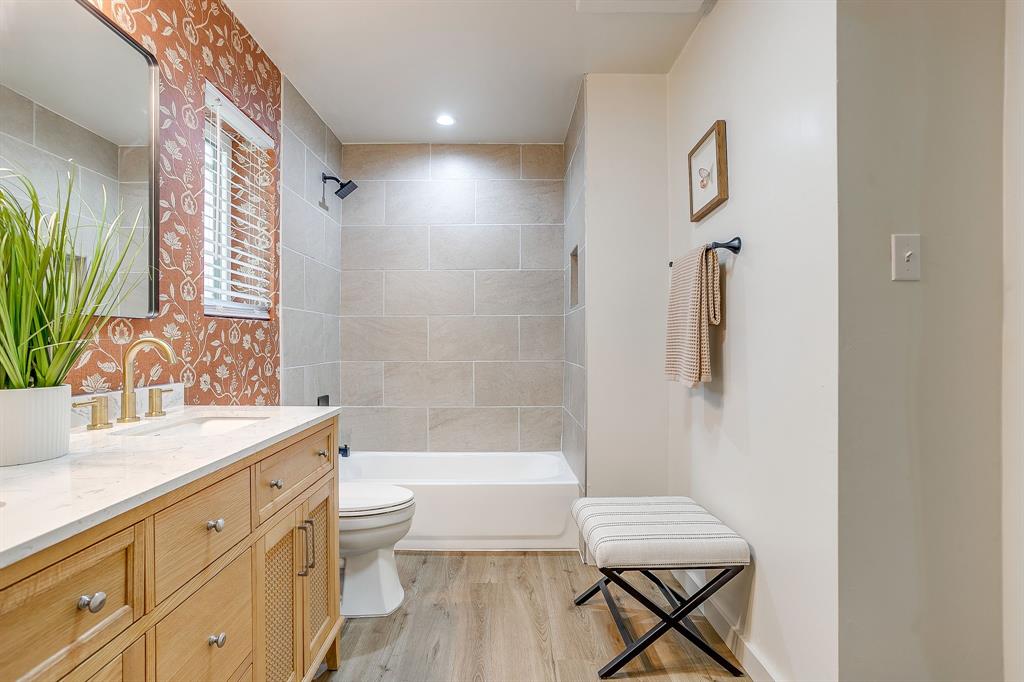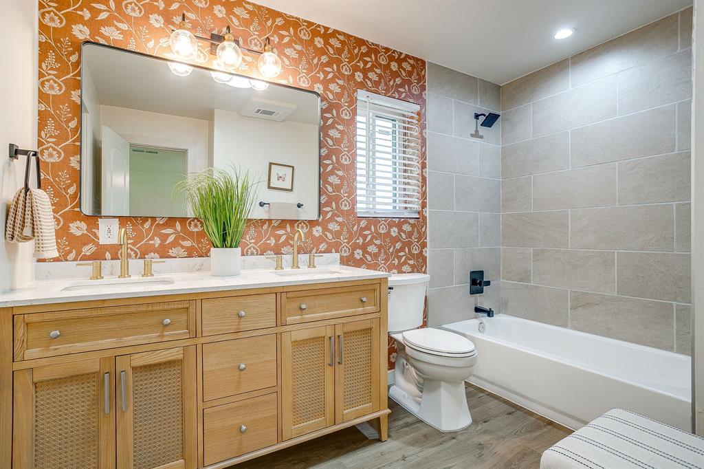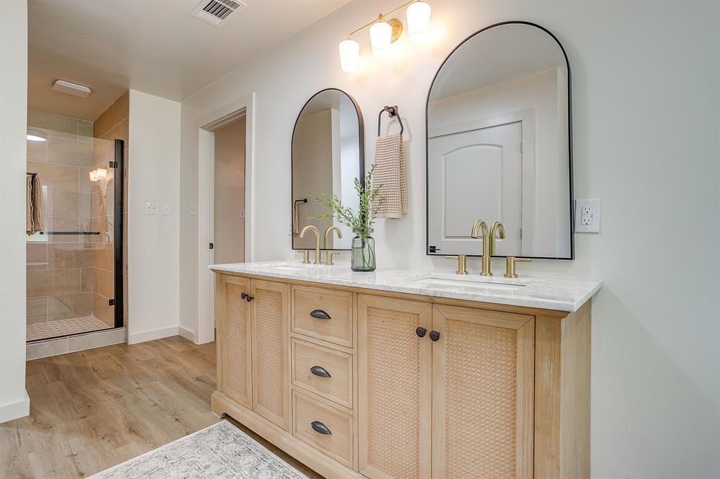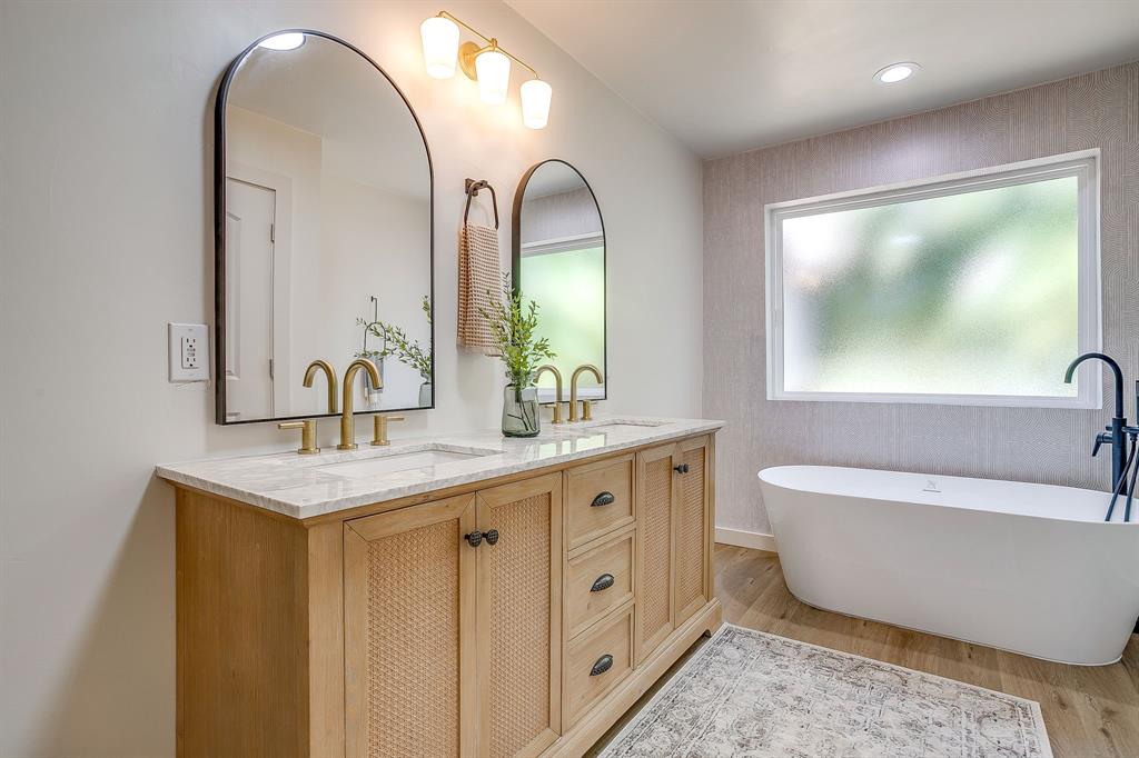 Enjoy new flooring throughout, fresh paint, and thoughtfully chosen finishes from top to bottom. The spacious living area is accented by designer lighting and flows seamlessly into the dining and kitchen spaces — perfect for entertaining. The oversized primary suite is your own private escape, complete with a spa-like bathroom featuring a soaking tub, walk-in shower, dual vanities, and beautiful natural light.