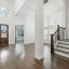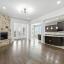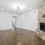 The home features an open-concept floor plan with hand-scraped hardwood floors, plantation shutters throughout, and abundant natural light. The spacious living room boasts a floor-to-ceiling stone fireplace that serves as a stunning focal point and adds warmth and character.