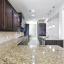 The gourmet kitchen is a chef’s dream with 3cm granite countertops, stainless steel appliances, gas cooktop with exterior-vented hood, three pendant lights over the island, and extensive cabinetry offering ample storage.