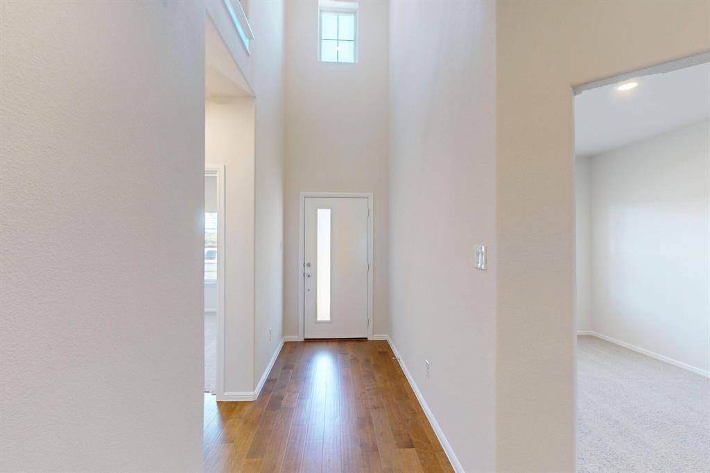 Step inside the open foyer and prepare to be impressed by the tall, volume ceilings and the wood flooring that guides you through the main living spaces.