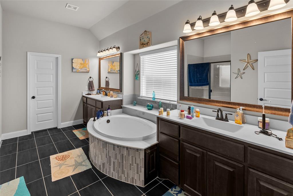 The spa-inspired primary suite is a true retreat with dual vanities, a luxurious soaking tub, separate walk-in shower, and plenty of storage. Spacious extra bedrooms