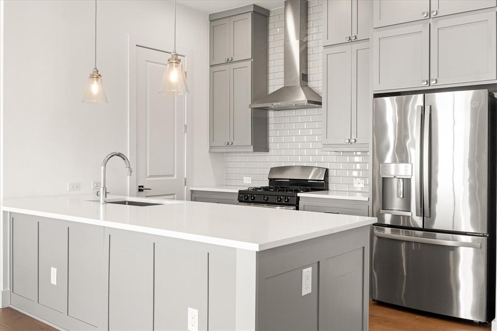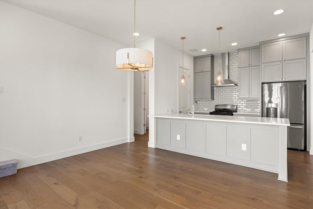 This 3-bedroom, 2.5-bath home features a seamless blend of classic and modern design with soaring ceilings, abundant natural light, and a neutral color palette. The open-concept living area showcases warm wood flooring, a cozy gas fireplace, and custom lighting, creating the perfect setting for relaxing or entertaining. The kitchen offers ample counter space and cabinetry, making meal prep a breeze.