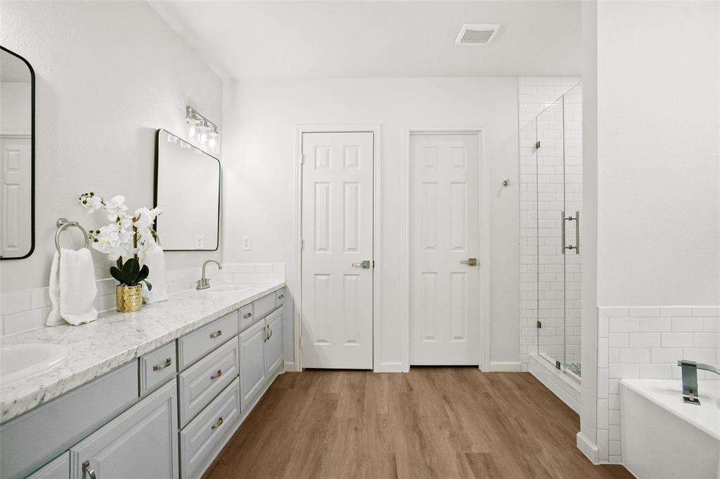Welcome to Sweetbriar at High Pointe, a charming neighborhood in Cedar Hill that blends community spirit with everyday convenience. This beautifully refreshed 4-bedroom, 2.5-bath home offers 2,480 square feet of thoughtfully designed space. Step inside to soaring ceilings and an open-concept living area filled with natural light, anchored by a stylish fireplace and open views to the second story above. The kitchen features crisp white cabinetry, stainless steel appliances, and a dedicated breakfast nook that flows seamlessly into the living and dining spaces, making entertaining easy. Throughout the home, durable luxury vinyl plank flooring provides the warmth of wood with modern durability. The spacious primary suite is conveniently located on the main level and offers a private bath with double vanities, a soaking tub, a separate shower, and a walk-in closet. Upstairs, you'll find three generously sized bedrooms and a full bath, perfect for guests, kids, or a home office setup. Additional highlights include a formal dining room, a butler’s pantry, an updated half bath, a separate laundry room, and an attached 2-car garage. Enjoy peace of mind knowing the entire home has been refreshed inside and out, with a clean, modern aesthetic. The backyard offers room to relax, garden, or entertain. Located just minutes from Joe Pool Lake, Cedar Hill State Park, Hillside Village shopping, and major highways like 67 and I-20, you’ll enjoy easy access to both nature and city life. This home is also zoned to Cedar Hill ISD and sits in a voluntary hoa that encourages connection through seasonal events and newsletters. Move-in ready and stylishly updated, this home is ready for you to make it your own!
