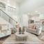 The foyer leads to a private Study enclosed by glass French doors, ideal for working from home or flexible use. Just beyond, the open-concept layout is grounded by wood flooring from the entry to the Family Room, with upgraded tile in wet areas for a seamless and durable finish.
