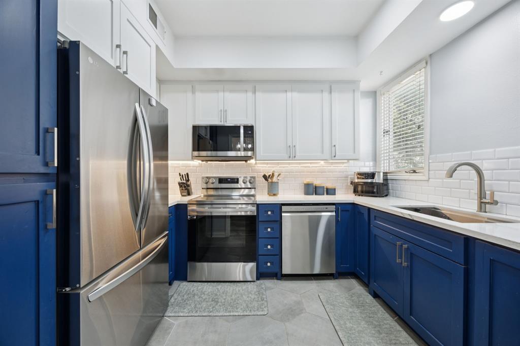 Welcome to 4040 Avondale Avenue, Unit 308- a completely reimagined fully renovated two-bedroom, two-&-a-half-bath condo that blends thoughtful design, premium upgrades, & exceptional natural light in the heart of Oak Lawn, one of Dallas’ most desirable neighborhoods. This 1,396 sq ft residence has been fully renovated from the studs, offering a like-new living experience in a well-established community. Upon entry, you’re greeted by a curved grand staircase with two story ceilings & natural skylights that immediately fill the space with warmth & light- setting the tone for the bright, airy ambiance carried throughout the home. The living room features a rebuilt fireplace wrapped with brand-new custom cabinetry, all-new lighting, & rich luxury vinyl wood flooring. Floor-to-ceiling windows invite in even more sunlight, while the private balcony offers a peaceful space to enjoy fresh air. The kitchen & bathrooms were gutted & rebuilt from the ground up, now boasting modern sleek black finishes, custom cabinetry, & smart layouts that balance beauty & function. An upgraded electrical panel & new fixtures throughout ensure effortless modern living. Upstairs, the sun-filled primary suite offers soaring ceilings, a second fireplace, a private balcony, & a fully renovated ensuite bath with dual vanities, soaking tub, & a separate shower—all surrounded by soft natural light. A spacious second bedroom features its own full bath, generous closet space, & beautiful light throughout the day. Additional features include: all-new lighting & electrical; extensive natural light throughout; brand new luxury vinyl wood flooring throughout; two private balconies; in-unit laundry with full-size washer & dryer (included); gated garage parking; community pool & fitness center. Perfectly located near Highland Park Village, Turtle Creek, the Katy Trail, & Uptown, this home offers refined comfort in the heart of it all. Schedule your private showing today & experience this rare Oak Lawn gem.