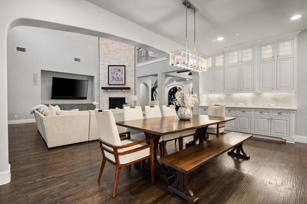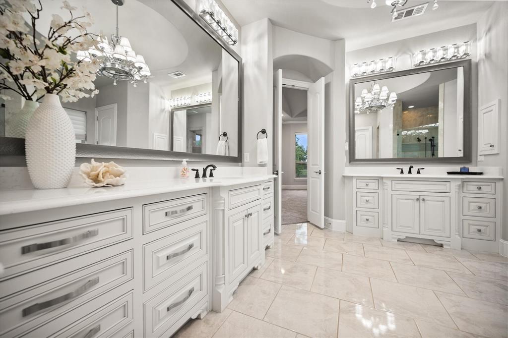 Stunning pond view in this gorgeous estate home showcases beautiful views, wood floors, high-end finishes, craftsmanship and custom design stone countertops and lighting. Home offers 5 bedrooms, 6 full & 1 half baths, and a 4-car garage and quaint courtyard, perfectly situated across from greenbelt space and within walking distance to Southlake Town Square, dining, shops and top-rated Carroll ISD schools. Grand entry and spiral staircase sets the tone for this elegant interior. Expansive great room features soaring ceilings, floor-to-ceiling fireplace and seamless flow into the chef’s dream kitchen. Designed for both everyday living and entertaining, the kitchen boasts dual islands, SS Wolf appliances including gas cooktop and double convection oven, Subzero built-in fridge, walk-in pantry, and abundant storage. Thoughtful floor plan includes split bedrooms providing privacy and comfort for everyone. The luxurious primary suite showcases a spa-like en-suite bath with extraordinary layout, walk-in closets, deep soaking tub, separate shower and vanities. Dedicated home office offers built-in desk and cabinetry shelves. Upstairs, you’ll find three spacious bedrooms with private en-suite baths & large walk-in closets, in addition enjoy the large game room, refreshment & snack bar space and outdoor balcony with panoramic view of the pond, ideal for family fun or gatherings. Offering an unparalleled location combined with exceptional design and timeless style, this home is the perfect blend of luxury and convenience!