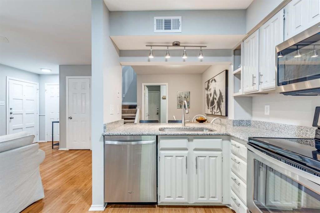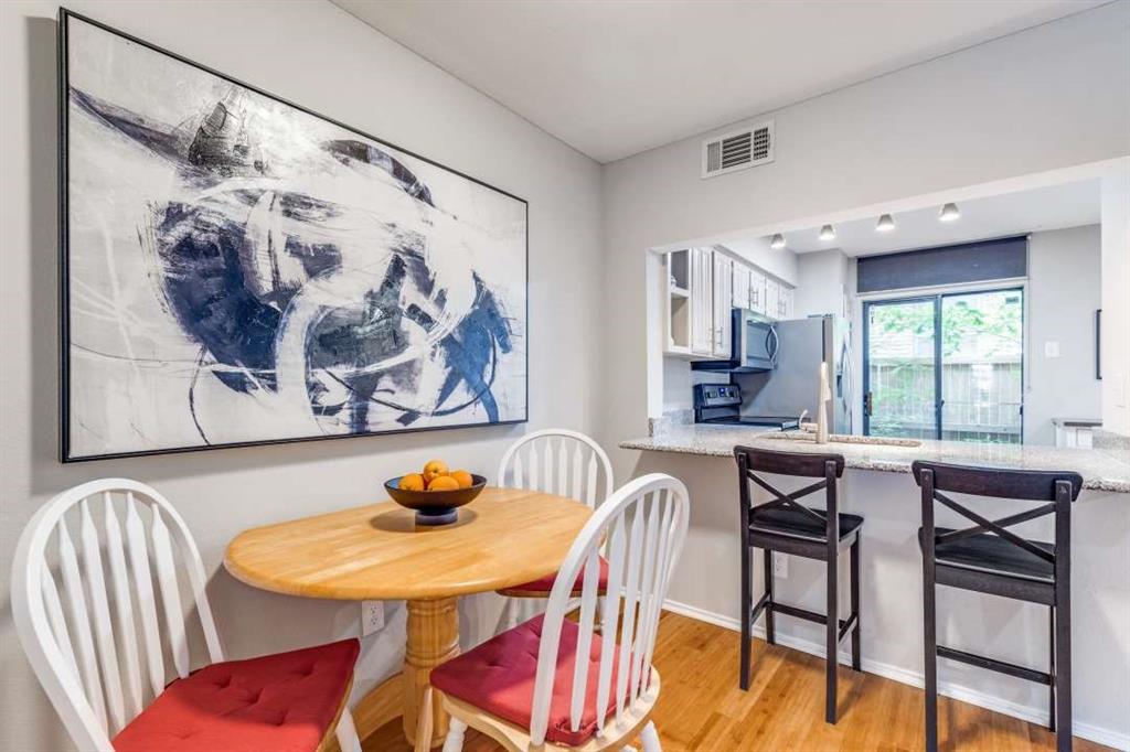 Welcome to Monticello Crossroads, a gated East Dallas community offering unbeatable access to the best of urban living. This updated, two-story, move-in-ready condo offers a large upstairs bedroom with study and full master bath, and open lower-level living area with half-bath, utility room and patio. Features: -Open-layout with unique bamboo flooring on first floor -Granite countertops, stainless steel appliances & breakfast bar -Attached covered carport -Spacious bedroom with walk-in closet + study -Utility room with washer & dryer included -Updated blinds, light fixtures, and ceiling fans -Full master bath with quartz counters and walk-in shower -Gated entry -Community pool -New HVAC condenser (2022) -HOA covers water, trash, recycling, maintenance, landscaping & pool access -Just .5 mile to Greenville Ave -Next to Glencoe Park with easy access to Katy Trail & Santa Fe Trail -Walkable to SMU, Mockingbird Station & DART -Immediate access to 75, just 5 miles from downtown