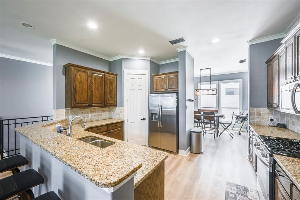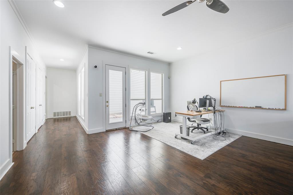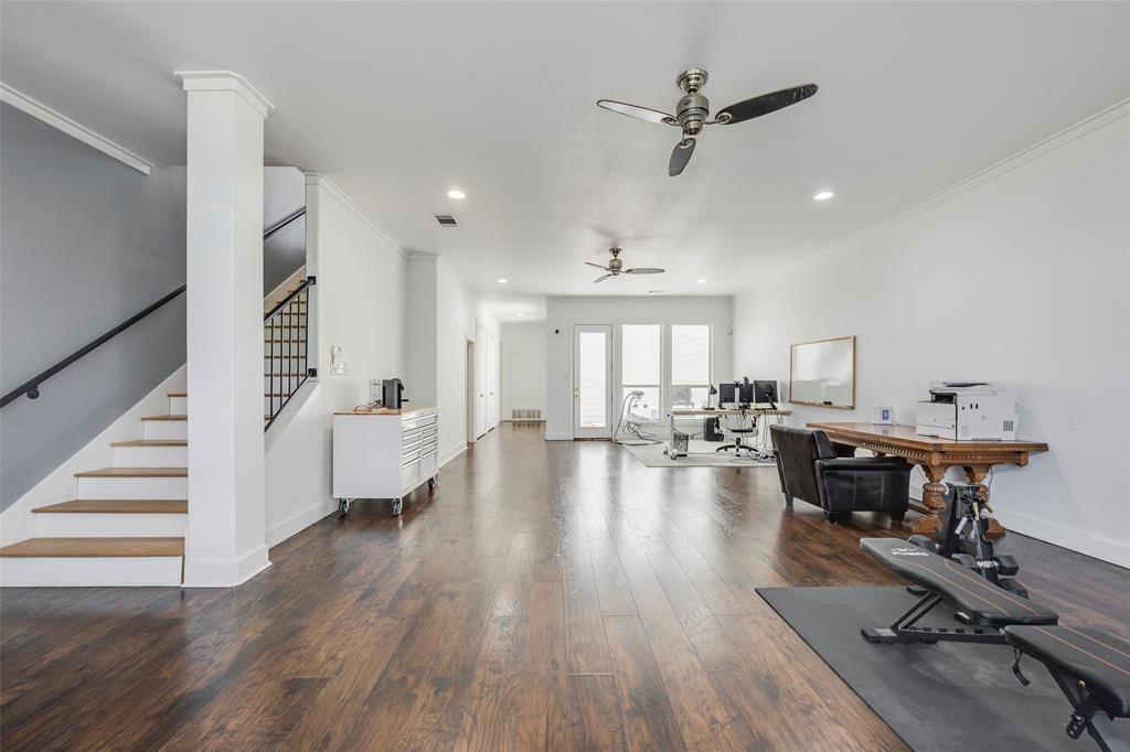 Experience the perfect blend of style, space, and versatility in this beautifully updated 2-bedroom, 3-bath townhome, ideally located in the highly desirable Capella Park community. With 2,587 square feet of thoughtfully designed living space, this residence offers exceptional proximity to Downtown Dallas, Dallas Baptist University, The Potter’s House, Bishop Arts District, and Mountain Creek Lake. Designed for both modern living and working, the flexible floor plan features a spacious first level ideal for a home office, studio, or guest suite. Upstairs, the open-concept main living area is flooded with natural light and enhanced by soaring 10-foot ceilings, fresh designer paint, and brand-new luxury vinyl plank flooring throughout. The kitchen is a true highlight, boasting sleek granite countertops and a complete set of all-new Frigidaire appliances, perfect for both everyday cooking and entertaining.