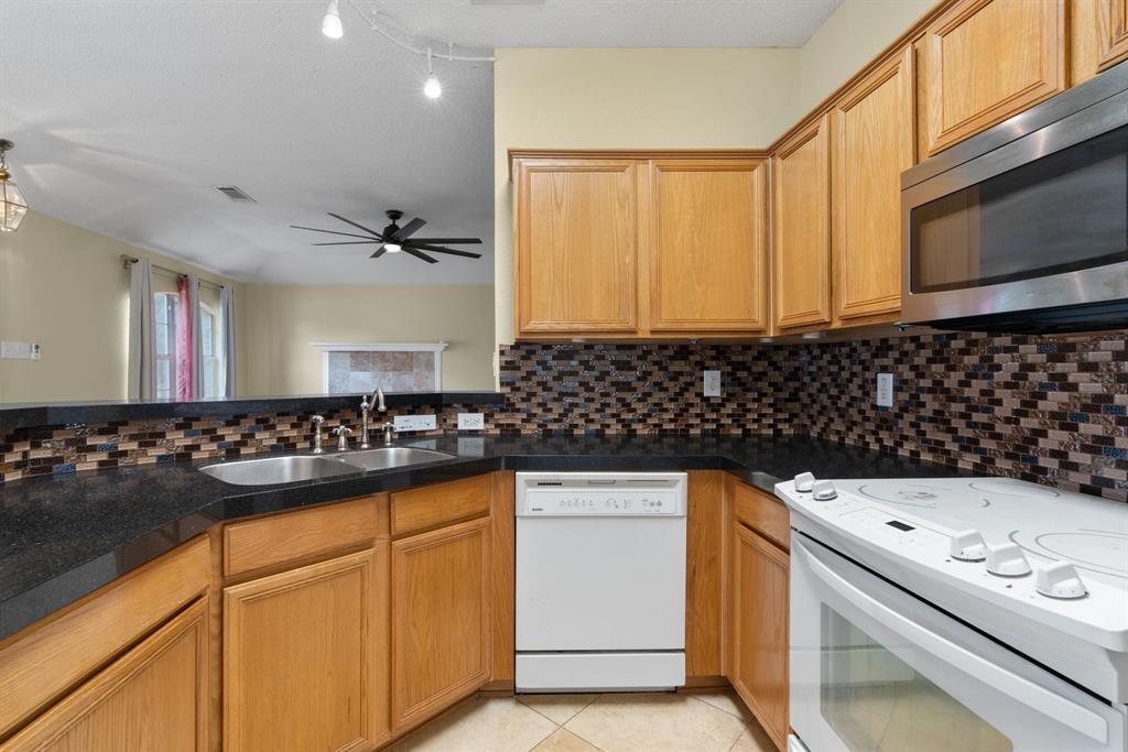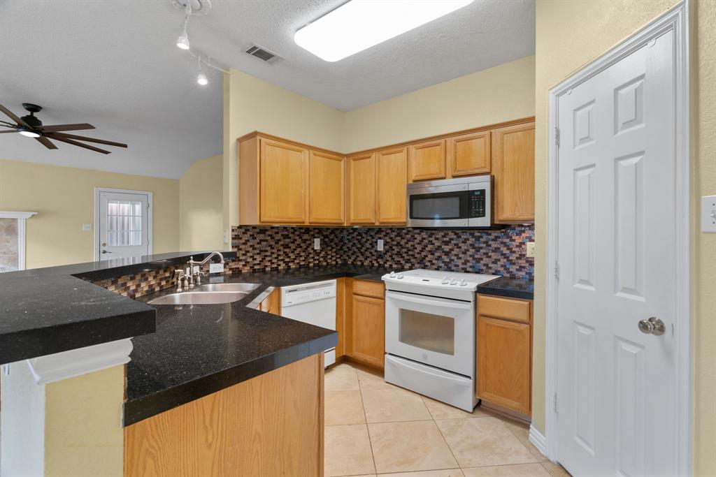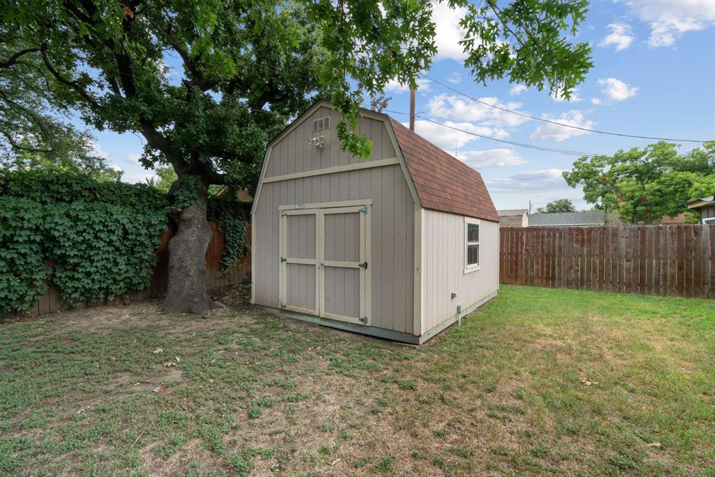 Step outside to a fenced backyard oasis with mature trees, a patio area for entertaining, and plenty of space for pets or gardening.