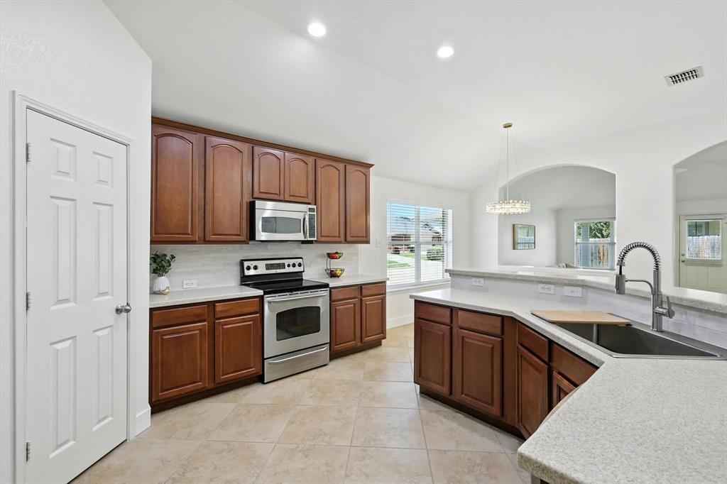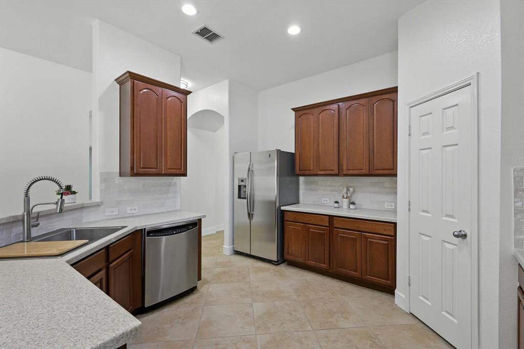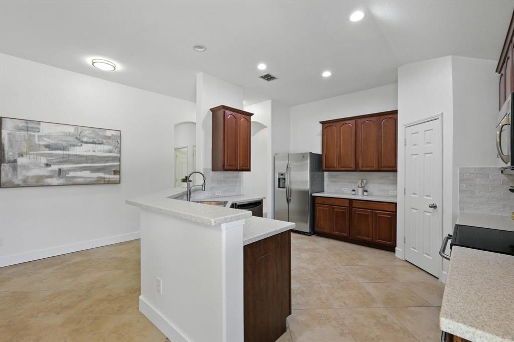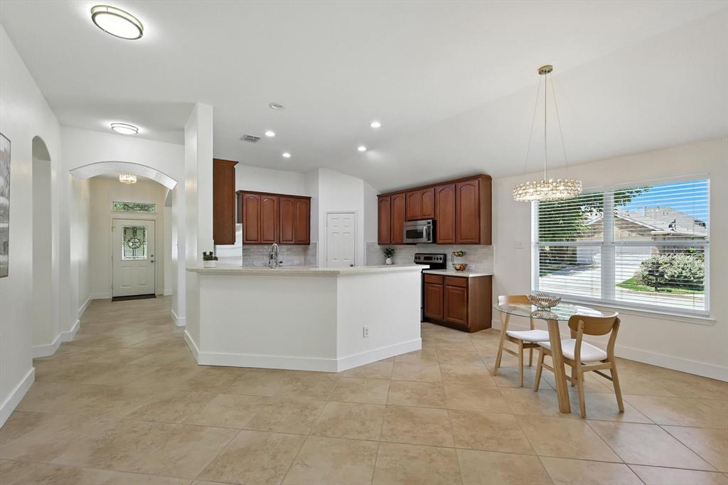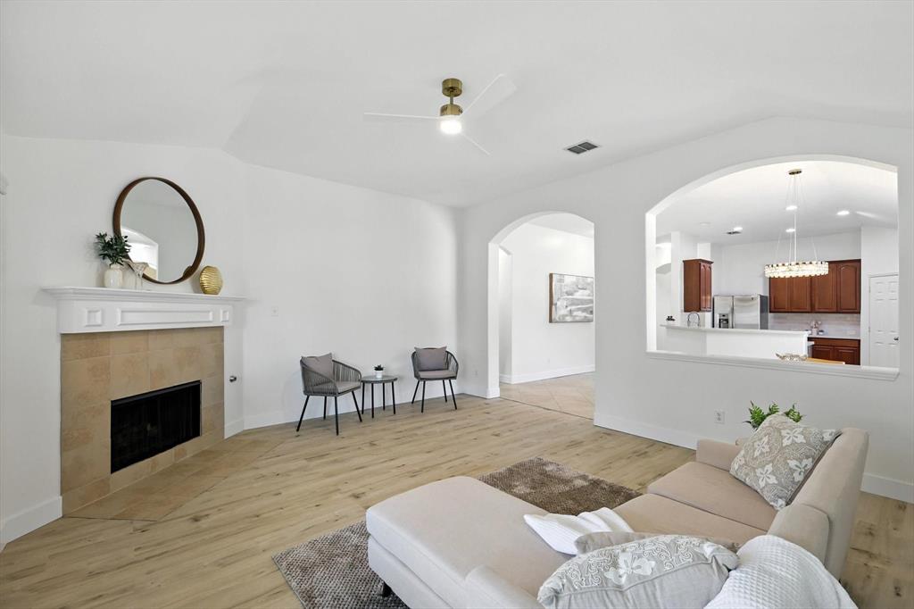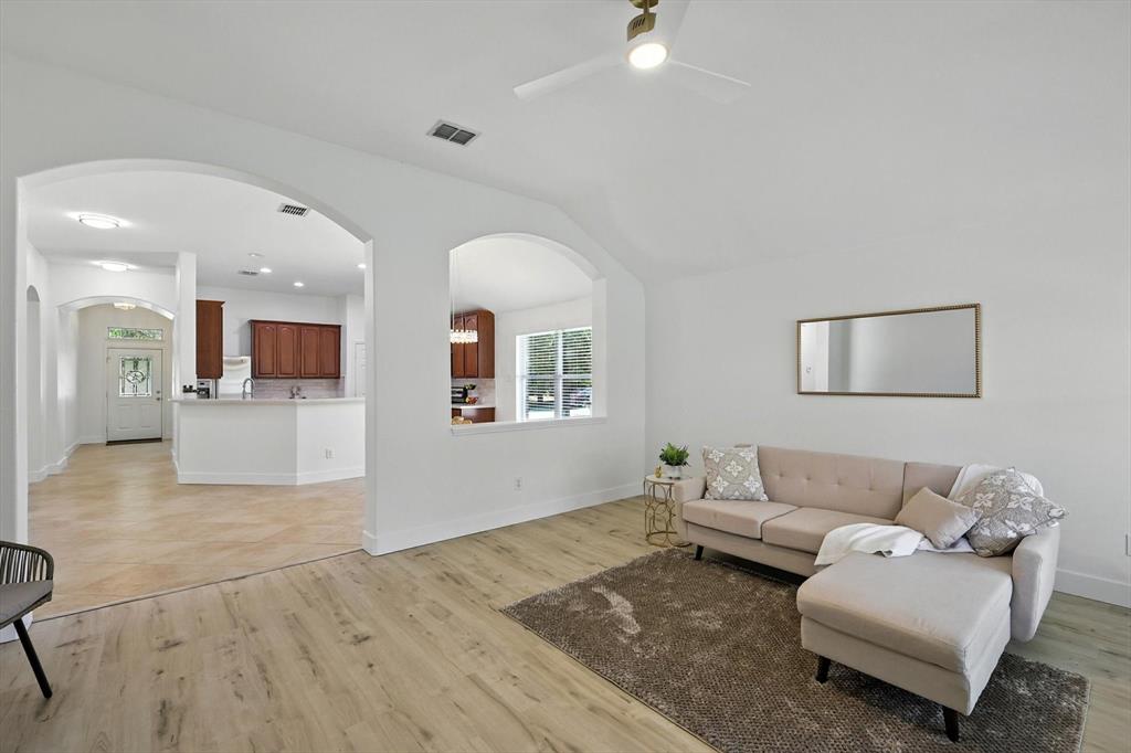 Seller offering $4000 towards closing cost. Bright, spacious, peaceful, modern! Beautifully updated just for you! Welcome to the perfect place to plant your roots! This beautiful one-story home sits on a desirable corner lot in the vibrant Paloma Creek community. Offering 3 bedrooms, 2 full baths, and a thoughtful open-concept layout, it’s designed for both everyday comfort and easy entertaining. Inside, enjoy fresh interior paint-including the garage, new lighting, and ceiling fans in every room, upscale 5” baseboards, and durable new stylish luxury vinyl plank flooring. The kitchen features stainless steel appliances, a new sink, stylish tile backsplash, and ample storage—plus the refrigerator stays! The spacious primary suite includes a huge walk-in closet, double vanity, jetted tub and separate shower, while the split-bedroom layout offers privacy and flexibility. Use the additional bedrooms for family, guests, or crafts. A versatile flex space is ideal for a game room, gym, or study. Outside, relax under the covered patio in your private, fully fenced backyard, great for pets, or weekend BBQs. Paloma Creek residents enjoy top-tier amenities including four Jr. Olympic-size pools, two fitness centers with a kids’ playroom, scenic walking trails, a clubhouse, and multiple playgrounds. Just blocks from the elementary school and high school. Full of charm, this move-in-ready home is the perfect blend of style, function, and community. As a bonus, ALL THE FURNISHING CAN STAY at your choice! This house is truly ready for you to just move in and make it your home! New Roof & Water Heater 2023!