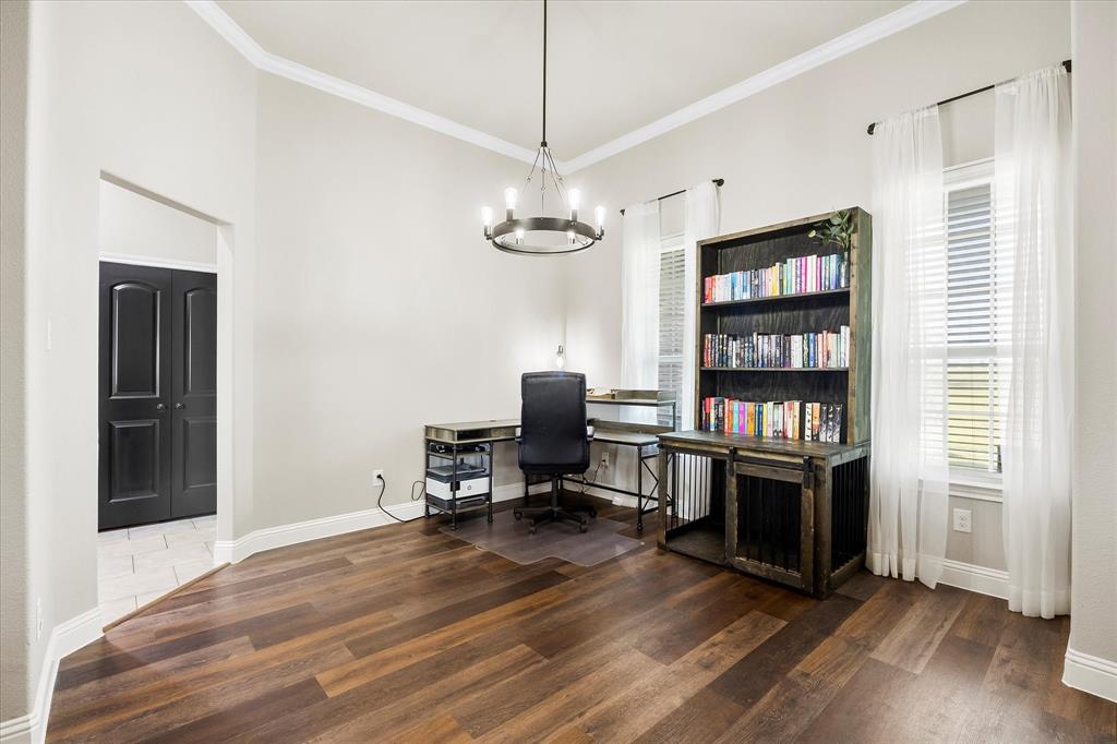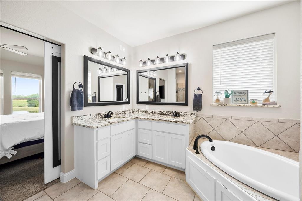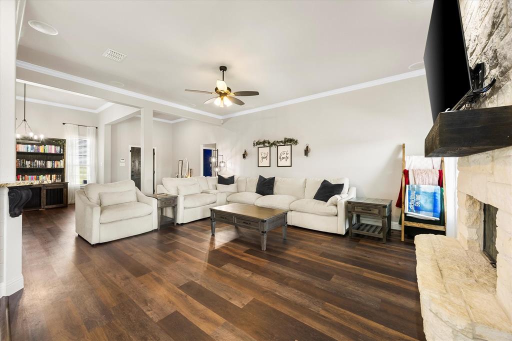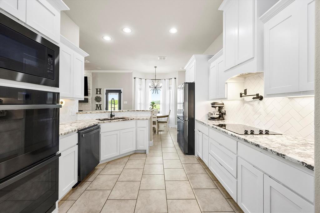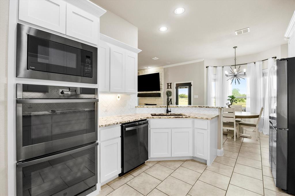 Unparalleled luxury and tranquility in this stunning 4 bedroom, 2 bathroom home situated on a sprawling 4 acre estate in the picturesque landscape of Caddo Mills, TX. This exquisite property is the epitome of refined country living, offering both a luxurious interior and captivating outdoor spaces that promise to impress. Step inside to be greeted by an expansive, open-concept living area that radiates warmth and sophistication. Light streams through large windows, dancing across elegant luxury vinyl flooring, recently painted walls, and detailed crown molding. The spacious living room is centered around a charming wood-burning fireplace, creating a cozy ambiance for relaxation or entertaining. Adjacent to the living area, a versatile space serves as a formal dining room or home office, catering to your lifestyle needs. The heart of the home is the gourmet kitchen, showcasing crisp white cabinetry, pristine granite countertops, and state-of-the-art stainless steel appliances. Enhanced with a pot filler for added convenience, this kitchen is designed for both everyday culinary creations and lavish entertaining. Retreat to the primary suite, a true sanctuary that offers an ensuite bathroom featuring dual sinks, a luxurious soaker tub, and an oversized shower. All secondary bedrooms boast generous proportions and include walk-in closets, providing ample storage and personal space for each resident. The allure of this property extends beyond its interior. The estate is beautifully landscaped and features a large covered patio, perfect for hosting guests against the backdrop of spectacular sunsets. The view extends to a tranquil pond, ideal for evening fishing. A prized workshop with electric adds functionality, catering to hobbyists and craftspeople alike. Fully enclosed with elegant black pipe fencing, this property offers security and serenity in a truly idyllic setting. Embrace a life of luxury and natural beauty in this extraordinary home!