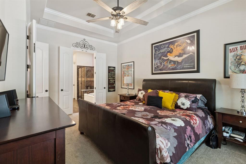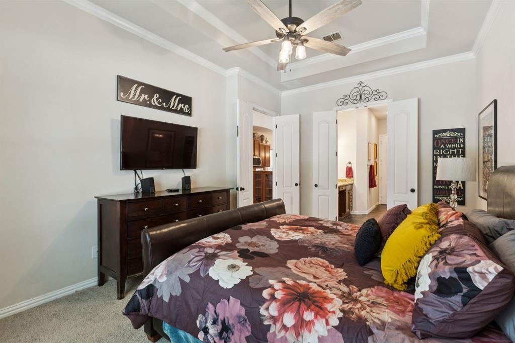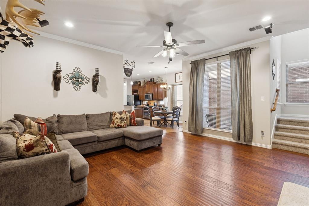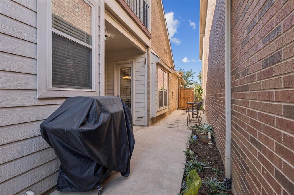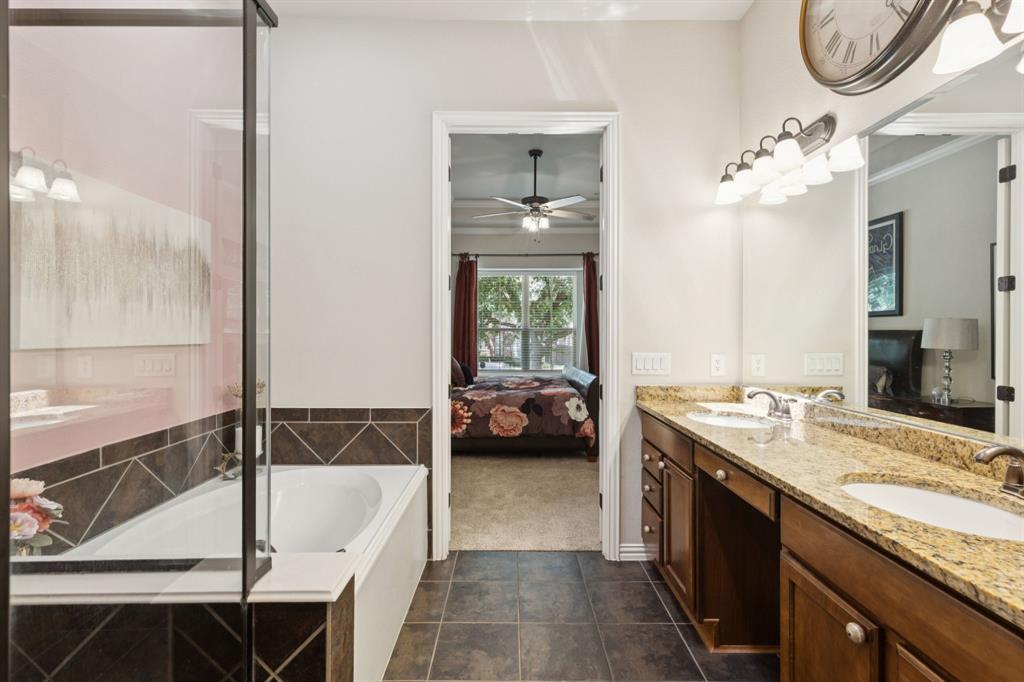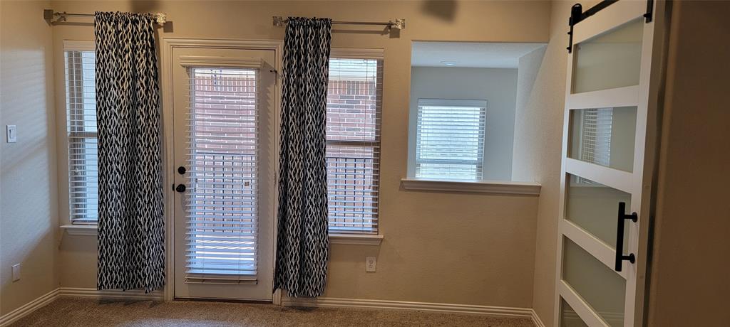 Welcome to 244 Carrington Lane, a beautiful updated home in the heart of Lewisville. As you arrive you will be greeted with beautiful stone and brick flowerbeds, mature trees and lush green grass. Enjoy this 4-bed, 3-bath home with an open floor plan, spacious living, formal dining, and modern kitchen that includes an eat in breakfast nook. As you enter you are greeted with a formal dining room currently transformed into a relaxing reading area. The primary bedroom with ensuite is located on the first floor and features a large window with a window seat, NEW carpet, upgraded tile, granite countertops, skylight, dual sinks, garden tub with separate shower, and WIC. In the kitchen you will find a breakfast nook with window seat, upgraded tile, rounded granite counter tops, stainless steel appliances that include a convention microwave, updated gas stove top and dishwasher. Enjoy the cozy fireplace, hand scaped wood flooring in the living and dining and built-in surround sound in both the living and upstairs flex 4th bedroom. Upstairs is one of two laundry rooms along with 2 spacious bedrooms and large full bath with dual sinks. The versatility of 4th bedroom or flex room makes it PERFECT for a bedroom, office, or entertainment room with a attached balcony, closet, and entrance into a large walk-in attic. Enjoy the covered patio with natural gas grill access, 2-car garage with extra storage and a second laundry room. Roof, garage door and gutters were replaced in 2023 and NEW carpet throughout August 2025. Enjoy simple living with a low maintenance yard and the community pool right across the street. Centrally located within the metroplex you are just minutes away from shopping, DFW airport, restaurants and major highways.
