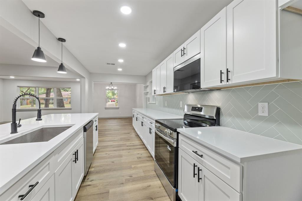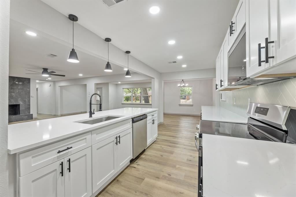 HOME SWEET HOME! Come fall in love with this Beautifully Remodeled 4-bedroom, 2-bath home with bonus room, perfectly situated in the vibrant heart of Grand Prairie at desirable Dorchester Place subdivision! Thoughtfully redesigned from top to bottom, this move-in-ready residence combines modern style with everyday comfort. Step inside to discover a bright, open-concept layout featuring fresh interior paint, gorgeous wood flooring, and stylish updated fixtures throughout. The elegant kitchen is a chef’s dream—boasting sleek quartz countertops, brand-new white cabinetry, stainless steel appliances, and a contemporary tile backsplash—ideal for both family meals and entertaining. Host unforgettable gatherings in the oversized family room, highlighted by a cozy wood-burning fireplace—perfect for the holidays or quiet nights in. Retreat to the spacious primary suite, complete with a fully renovated spa-like bath featuring dual vanities and a walk-in shower. Three additional bedrooms offer plenty of space for family or guests, and a versatile bonus flex room is ideal for a home office, gym, or playroom. Step outside to a generous backyard with mature shade trees and a brand-new fence, perfect for entertaining, gardening, or future additions. You'll love the 2 car garage & spacious carport with alley access. Oversized lot 85x155. Located just minutes from parks, shopping, entertainment, and major highways, this home offers the perfect blend of style, space, and convenience. Don’t miss out & make this beautiful home yours today! NOTE: Seller can contribute with $2,500 towards closing costs.
