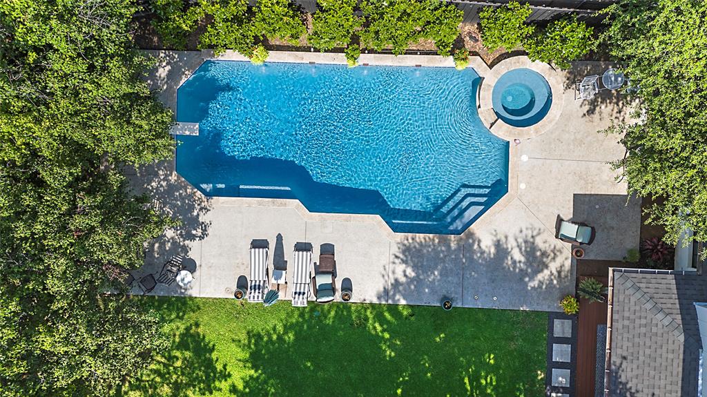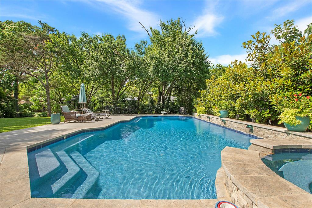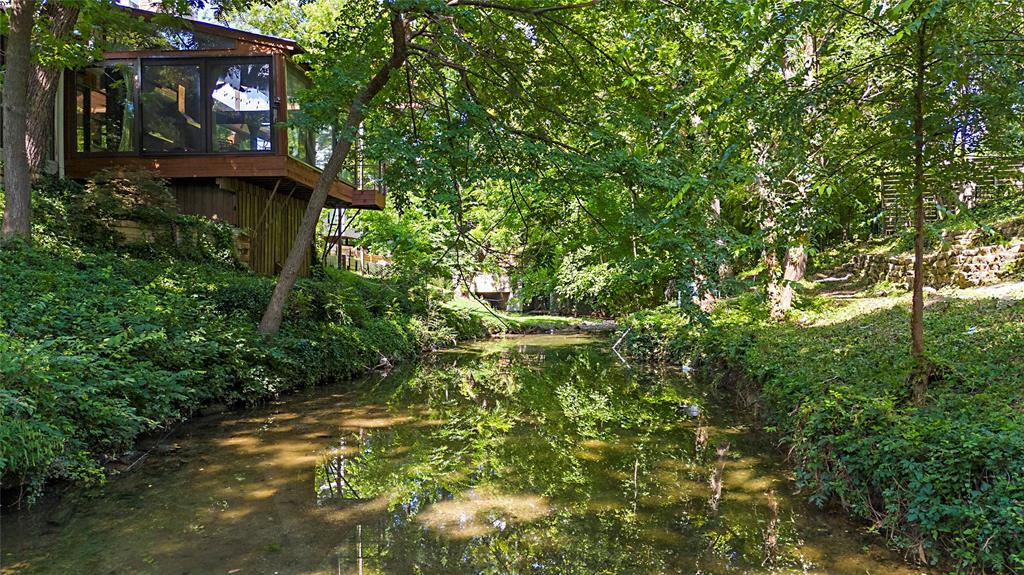 peaceful retreat steeped in history—just minutes from the heart of Dallas. Every detail has been thoughtfully curated with high-end materials and finishes, including quartzite and marble stone, rich hardwoods, lush landscaping, and premium stainless steel appliances: Sub-Zero, Bosch, and Scotsman. The result is a refined and stylish and livable home designed for comfort and entertaining. A grand 12-foot-deep front porch sets the tone—perfect for morning coffee, evening cocktails, or watching local wildlife while connecting with neighbors. The covered back porch overlooks a sparkling pool and spa, complete with an outdoor TV and serene views. Down the gently sloping backyard, a custom fire pit beside the creek creates the