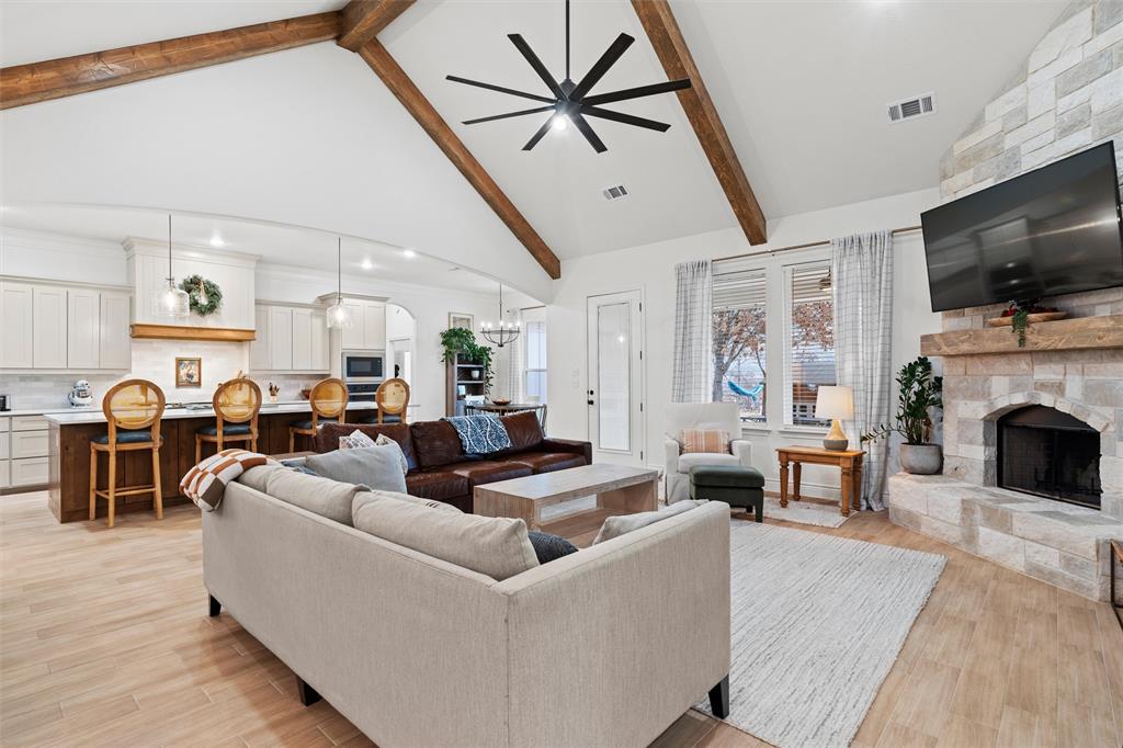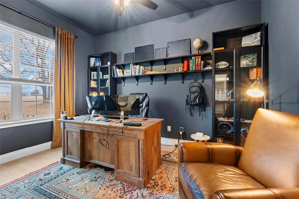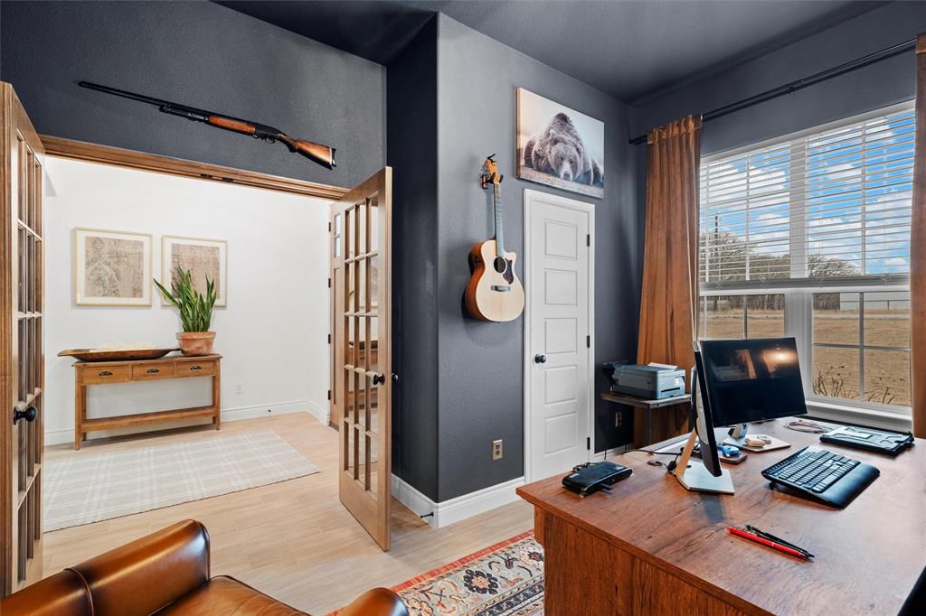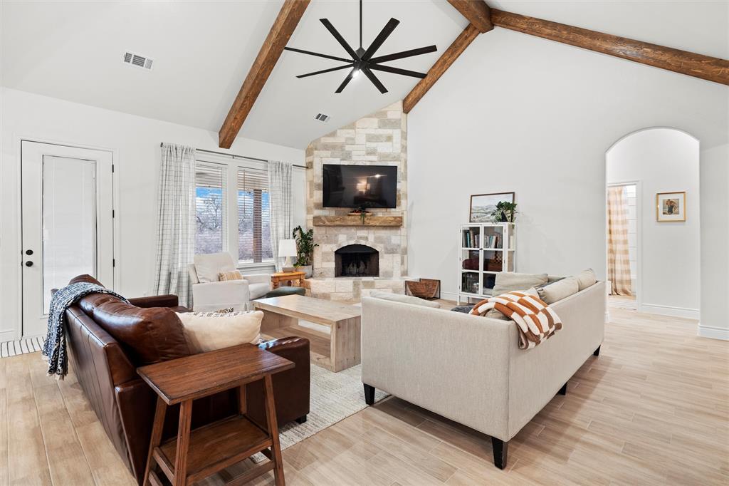 Wow, what a stunning home, just turn the key and move right in. Light, bright and open, the home is situated on a one acre, partially wooded lot facing the Kezer Air Ranch. The kitchen offers a king size island with endless counter and storage space, attractive quartz tops, 42 inch cabinets, 2 separate ovens, stainless steel appliances, a dream come true 6x11 walk-in pantry and a spacious breakfast nook along with seating at the oversized island. Enjoy the massive great room, 21x21, perfect for entertaining or just relaxing. It is accented by a beamed cathedral ceiling, wood tile floors, stone fireplace, and a wall of windows bringing the outside in. The split primary bedroom offers loads of floor space and an ensuite bath with separate tub and shower, separate vanities, and a 12 x 11 walk-in closet. The second and third bedrooms are both spacious with great storage space. The second bedroom has an ensuite private full bath and the third bedroom is serviced by a full bath in the adjoining hall. The 4th bedroom is currently an office but would be perfect for guests if the need arises and is accented by French doors and wood tile floors. Looking for a large 3 car garage, this is your home. The 23x35 garage is perfect for your larger trucks and toys. The backyard allows you to enjoy country living and the large, covered patio is perfect for all occasions. View the second photo to see the additional wooded adjacent land along with a survey in the media section. (Floorplan is included in the media section.) Assumable VA loan is a 3.625% (veterans only).
