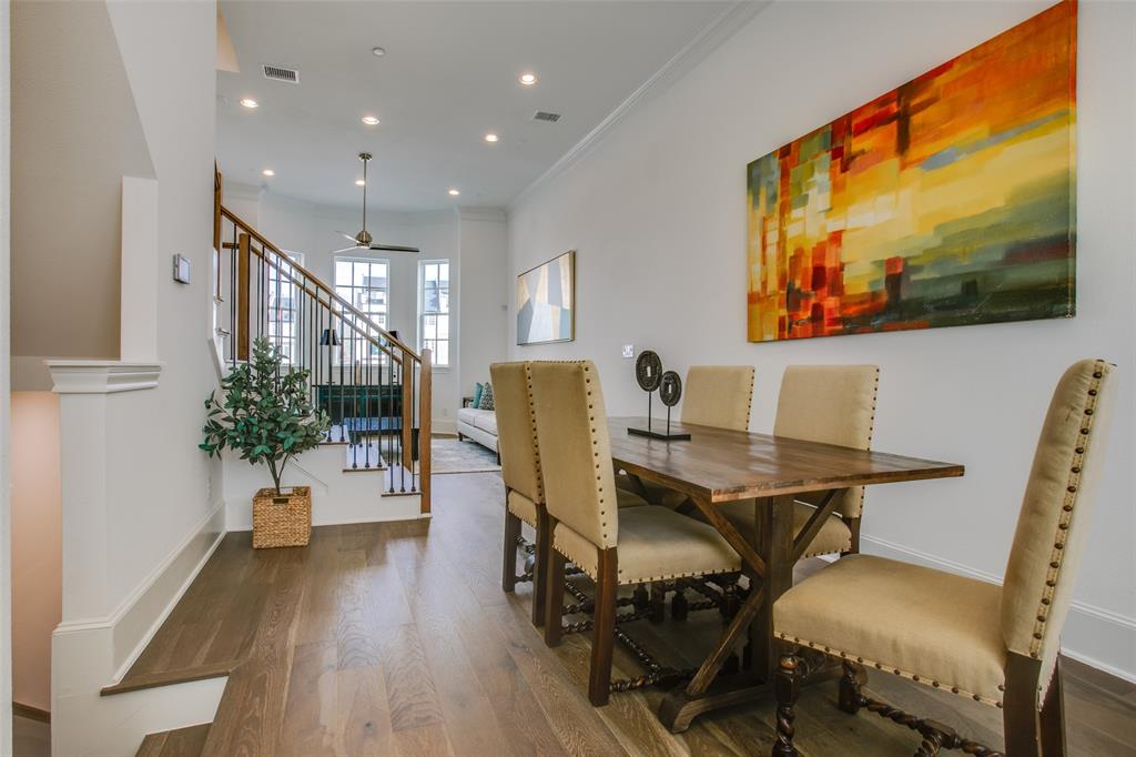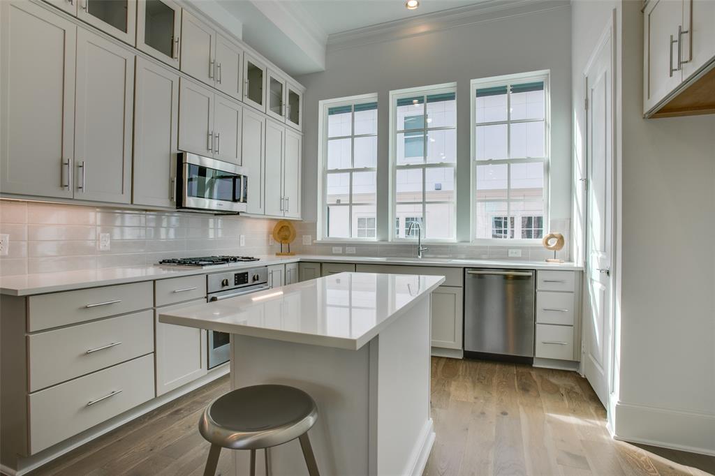 Stunning townhome, minutes from Downtown, Oak Lawn and the Dallas Medical District. Sophisticated 2-bed, 2.5 bath design by InTown Homes at Cedar Branch features high-end finishes throughout. The open design, 12' ceilings, and abundant natural light on the main level provide a sense of space while the impressive gourmet kitchen features Fisher & Paykel stainless steel appliance package, exquisite quartz countertops, tile backsplash, and soft-close cabinetry. The primary suite provides an ideal space to unwind, complete with 11' foot ceilings, spacious walk-in shower, dual vanity and walk-in closet. Sustainable engineered hardwoods throughout add to the upscale feel of the home while the 2-car tandem garage provides plenty of space for parking and additional storage. Community features lush landscaping and a charming community pool. Special financing incentives are available for this home. PLEASE GO TO MODEL HOME FOR ALL OPEN HOUSES - 4604 WARWOOD LN.