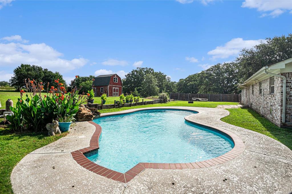 Enjoy cozy evenings by the wood-burning fireplace and sunny afternoons lounging by the gorgeous in-ground pool. The expansive backyard offers endless opportunities, with a large barn equipped with electricity, three versatile sheds, and ample open space for gatherings or gardening.