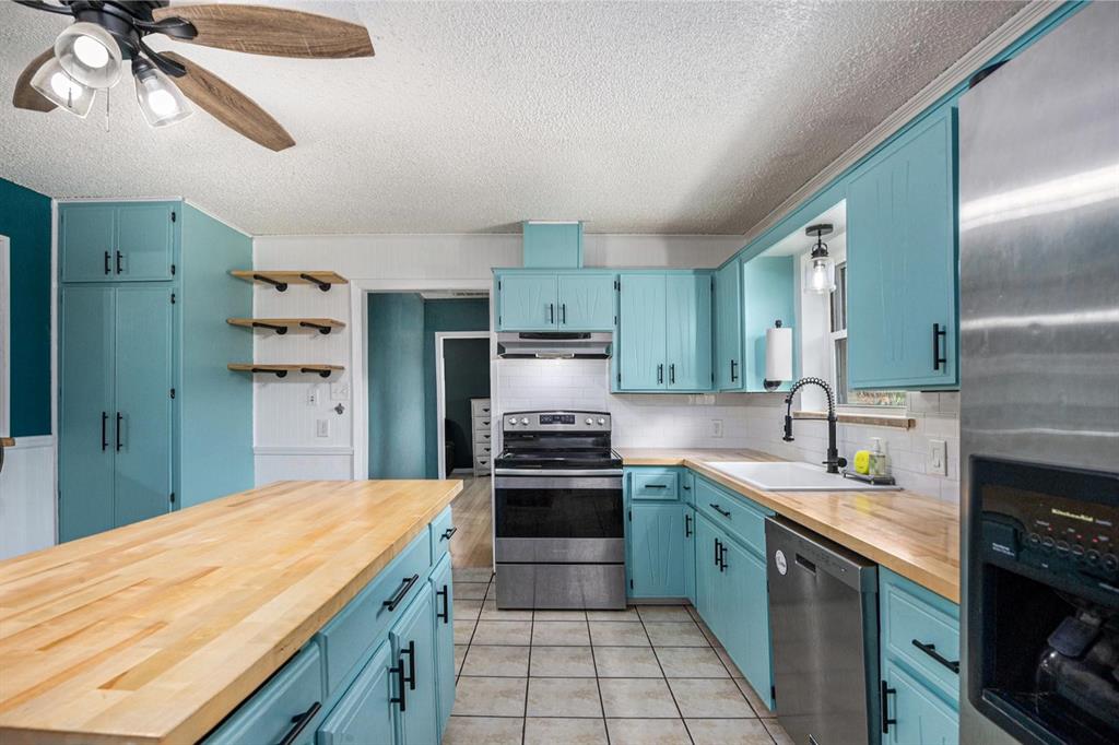 Step inside to discover a thoughtfully remodeled kitchen featuring warm butcher block countertops, a classic farmhouse sink, and plenty of space for culinary creativity. Both bathrooms have been tastefully renovated with new flooring and countertops, and the home features not one, but two primary suites – ideal for guests or multigenerational living.
