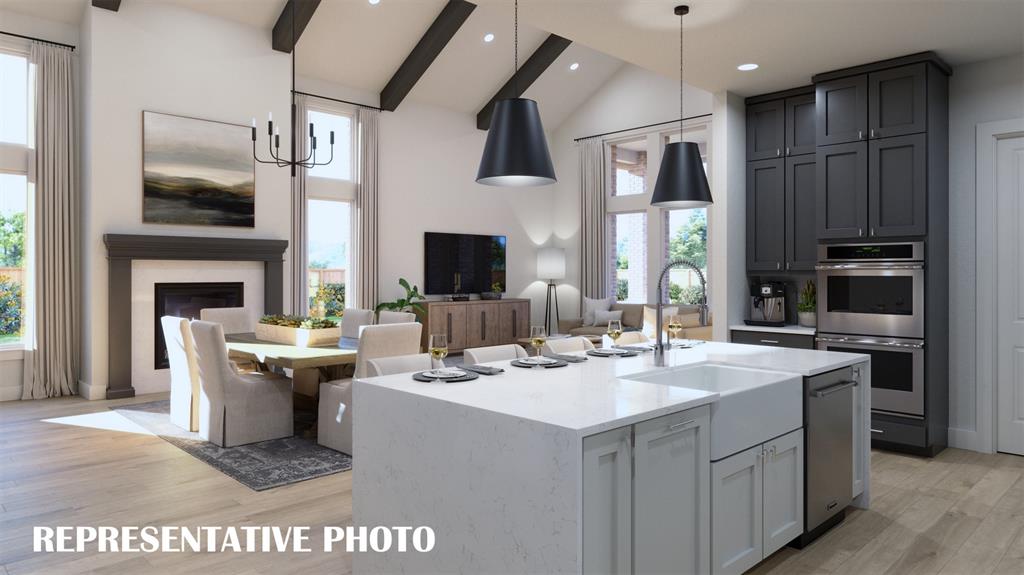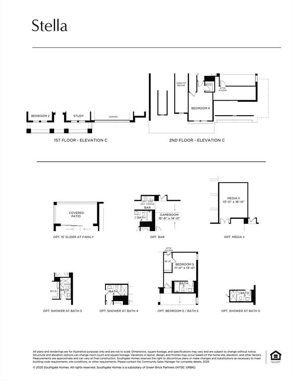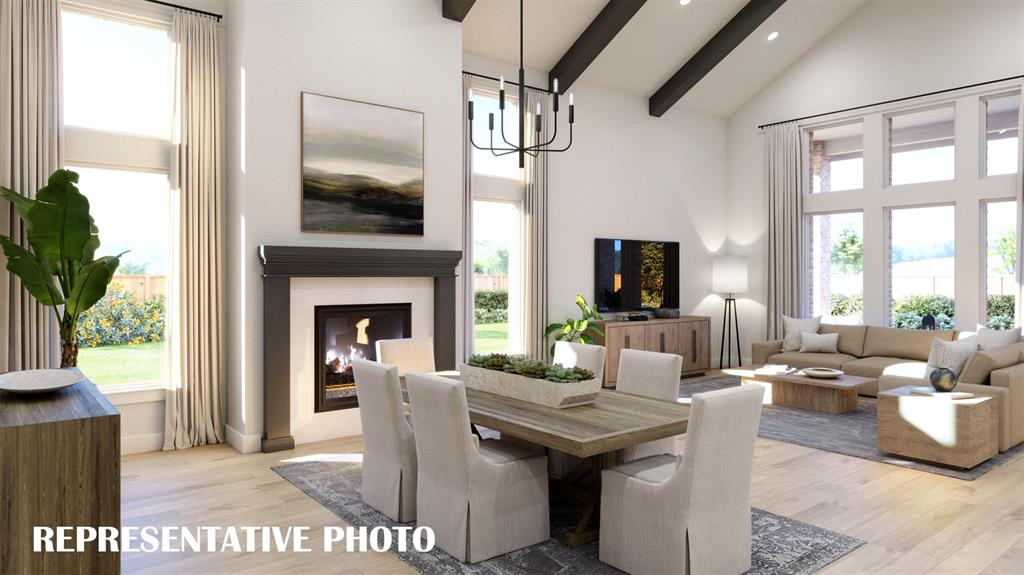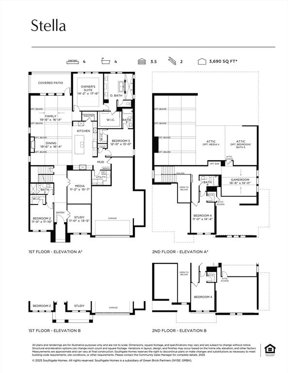 SOUTHGATE HOMES STELLA floor plan. This 5 bed, 5 bath home is loaded with thoughtful upgrades. Downstairs features 3 bedrooms, a media room, and a spacious laundry room. The kitchen includes quartz countertops, a JennAir 6-burner cooktop, and plenty of cabinet space, all open to the family and dining area with 4 large ceiling beams. The owner’s bath offers a walk-through shower and freestanding tub, with quartz countertops in all bathrooms. Upstairs has 2 bedrooms, a game room, and a second media room. Sliding glass doors lead to a large covered patio, and the 3.5 car garage gives you plenty of extra space. All of this is located in the highly desired Windsong Ranch community, home to the iconic 5-acre crystal lagoon.