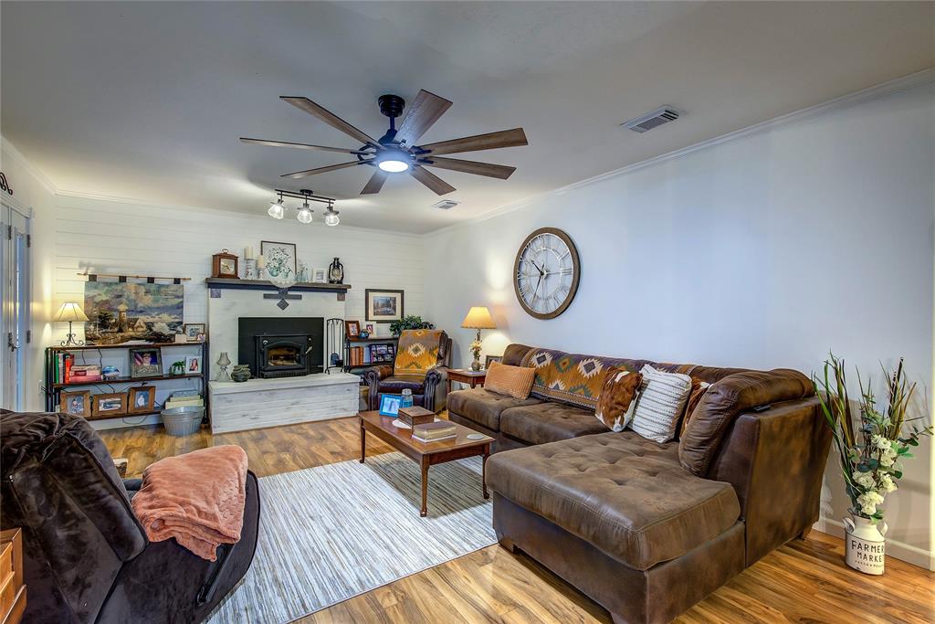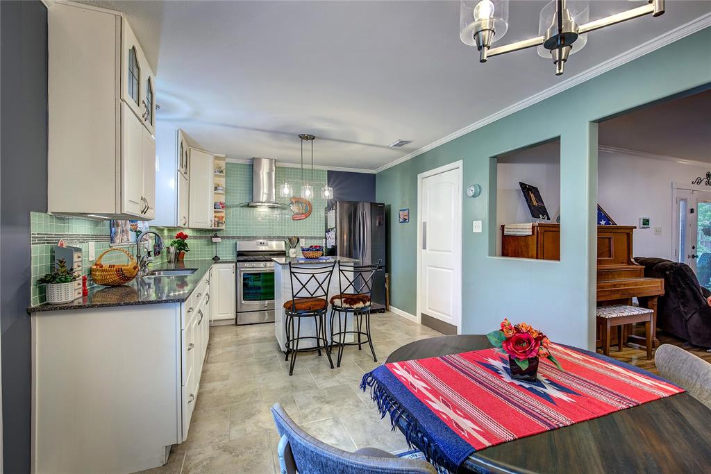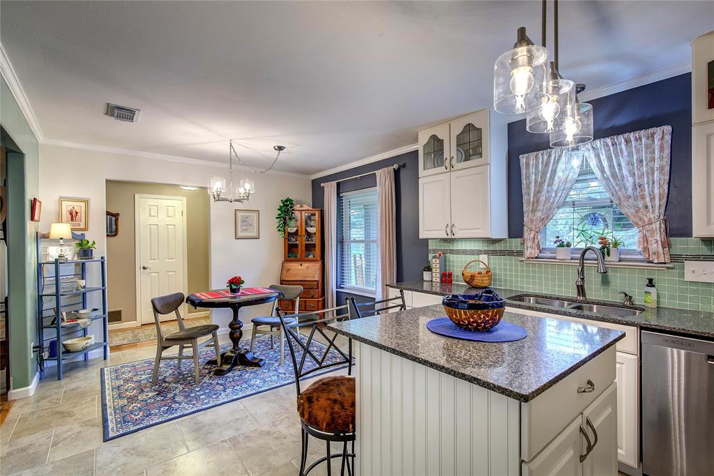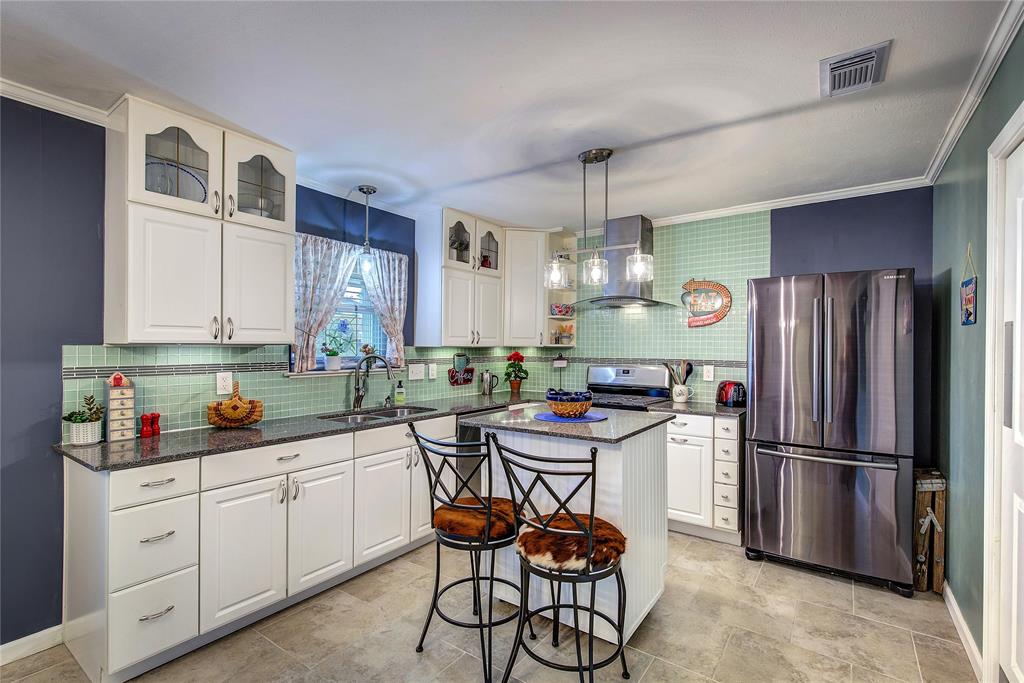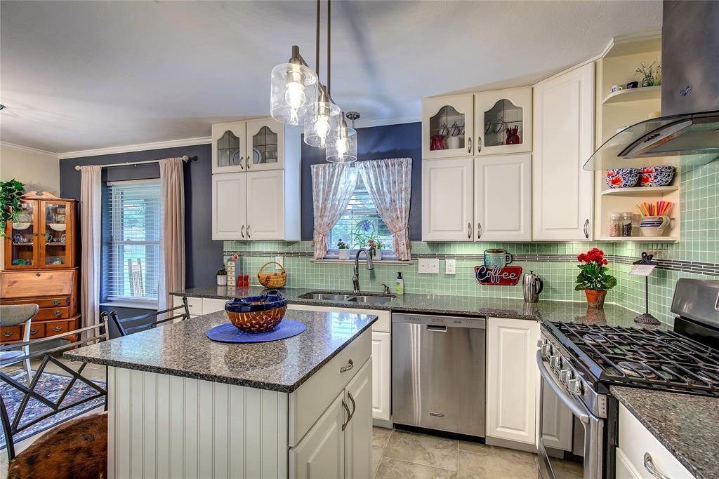 This move-in ready home welcomes you with an open-concept layout, featuring energy-efficient double-pane windows that reduce outside noise and a high-efficiency wood-burning brick fireplace. The bright and airy kitchen is a true highlight, boasting granite countertops, updated lighting, a stainless steel gas range, stainless steel vent hood, and an island.