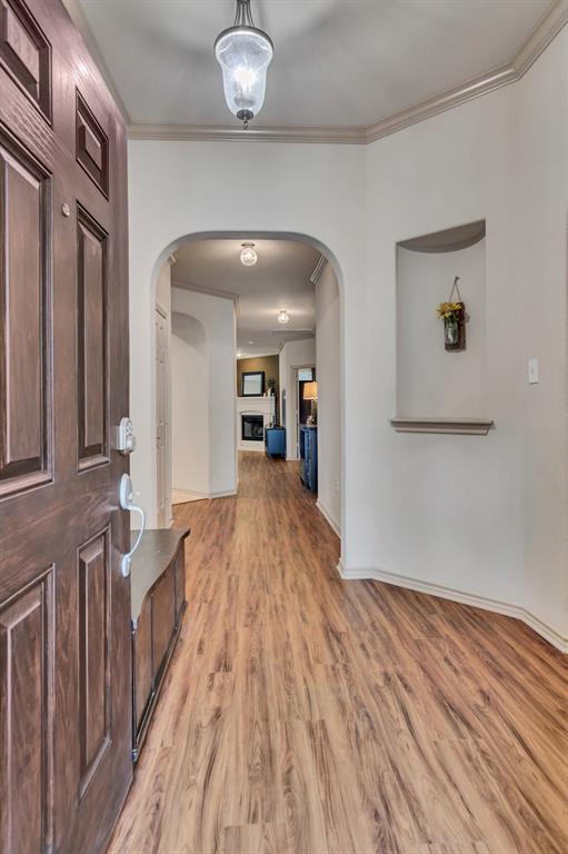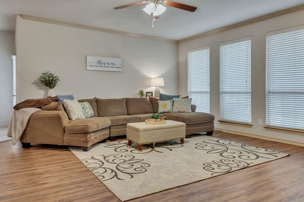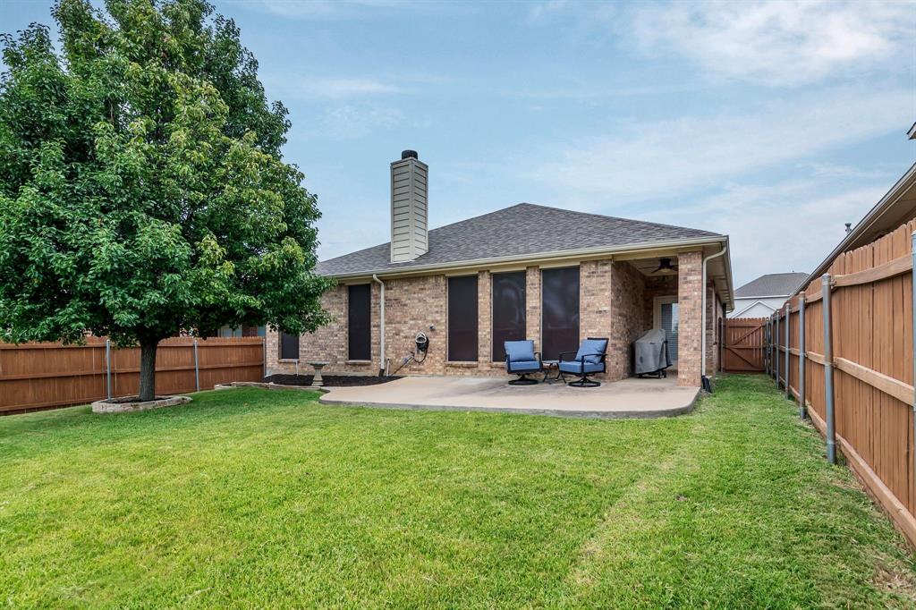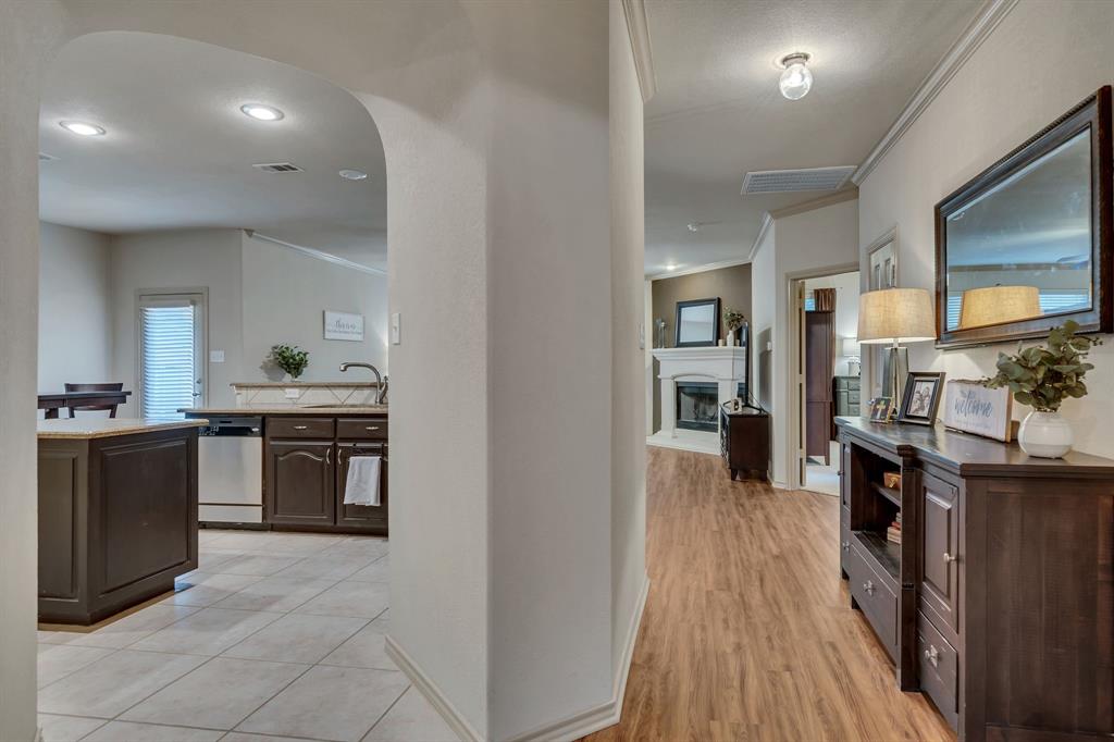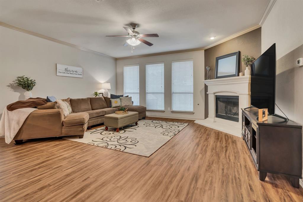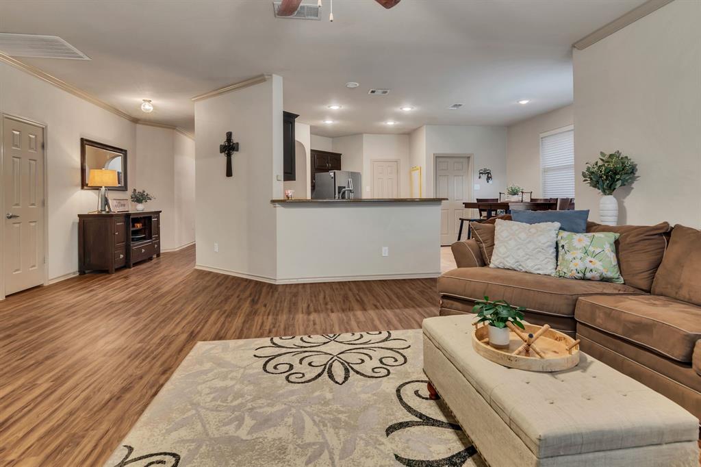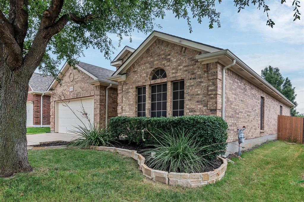 CHARMING SINGLE STORY HOME ON STUNNING GREENBELT LOT! This beautiful home features an open concept floor plan with spacious living area, new wood like floors, gas fireplace, crown molding, decorative art niches, new lighting & updates throughout. Fresh paint, new flooring and carpet intalled last week. Kitchen features include 42inch cabinets, granite countertops, center island, stainless appliances, built in microwave, gas range and walk-in pantry. The Primary bedroom features a new carpet, fresh paint, dual sinks, updated fixtures, garden tub, sep shower & walk-in closet. Split bedroom floor plan with spacious secondary bedrooms. Relax in your low maintenance back yard with covered patio and extended patio. Premium lot with gorgeous views overlooking the treed greenbelt, with plenty of room for pets and play. Located in the Alliance Corridor and the desirable neighborhood of Tehama Ridge with community club house, pool, splash pad, playgrounds, pond and walking-jogging trails. Close to schools, shopping & great restaurants. Easy access to I-35. Energy efficient solar screens to help keep your utility bills low. Water Heater replace in 2025, Roof 2021. Well maintained & move-in ready.