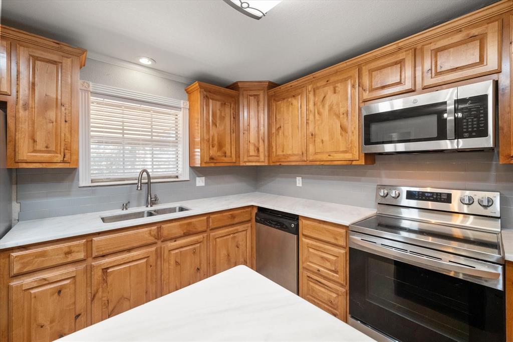 Step into this stylish 3-bedroom, 2-bath home where comfort meets modern elegance! With engineered hardwood flooring throughout, this home boasts a seamless, inviting vibe. The kitchen features marble countertops, stainless steel appliances, and an updated look from 2022. Enjoy peace of mind with an HVAC system and leveled foundation, both from 2022, along with a hot water heater replaced in 2020. Set on a generous 0.34-acre lot, there’s plenty of space to create your ideal backyard retreat. An added bonus is solar panels to keep your energy bill low! Plus, you’ll love the convenience of walking to Mabank Central Elementary or quickly accessing Hwy 175 for dining, shopping, and more. With Cedar Creek Lake minutes away, your weekend plans just got a lot more exciting. This home is more than a property—it’s where your next chapter begins!