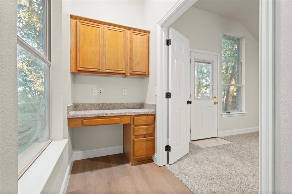 Rare opportunity in sought-after Aubrey ISD! Treed lots of this size in this neighborhood are few and far between, and this spacious 1.12-acre property is one of the rare homes surrounded by mature trees. The setting provides abundant shade, natural privacy, and serene views. Inside, the open layout flows easily, filled with natural light and framed by views of the trees outside. This charming 3-2-2 plus study home blends a peaceful setting with modern updates. Recent remodel highlights include a new roof (2025), new HVAC (2025), new water heater (2024), new vinyl plank flooring, new carpet, and updated tile and granite in the baths. Step outside to enjoy the private covered patio, perfect for outdoor living. A powered storage shed adds functionality-No HOA!