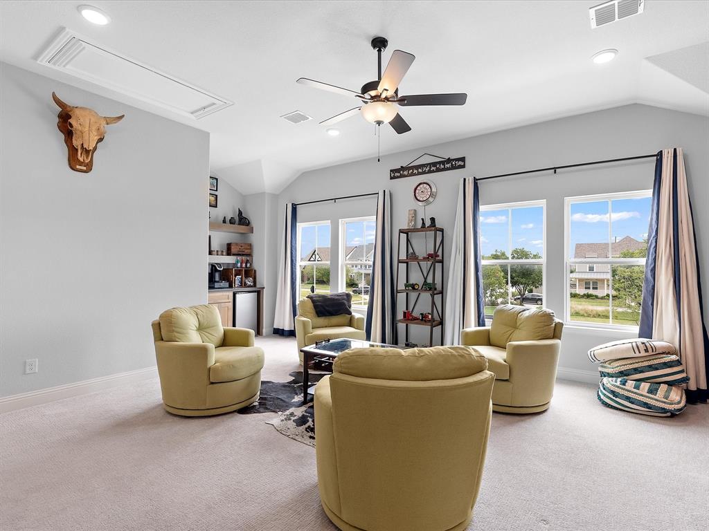 Situated on a prime corner lot adjacent to a planned green space, this home is perfect for those seeking a connected, amenity-rich lifestyle. Located just 24 miles from DFW Airport, minutes from Tanger Outlet Mall and Texas Motor Speedway, and only 0.5 miles from a new Tom Thumb grocery store opening in 2026, this property offers unmatched convenience. Some furniture and golf cart negotiable with acceptable offer. Schedule a showing today to experience this stunning home in person!