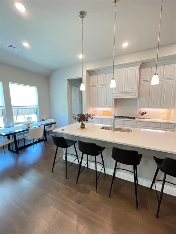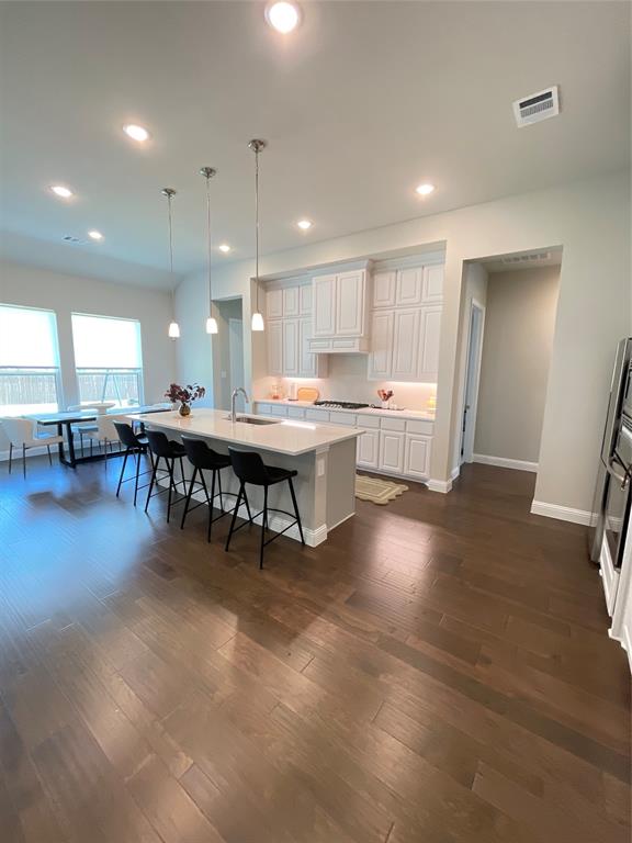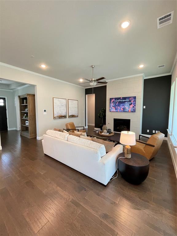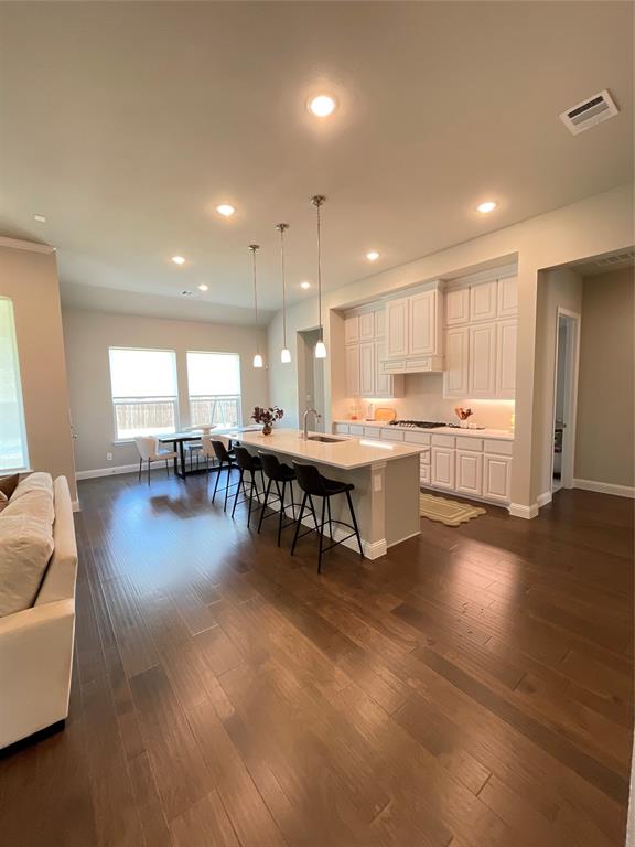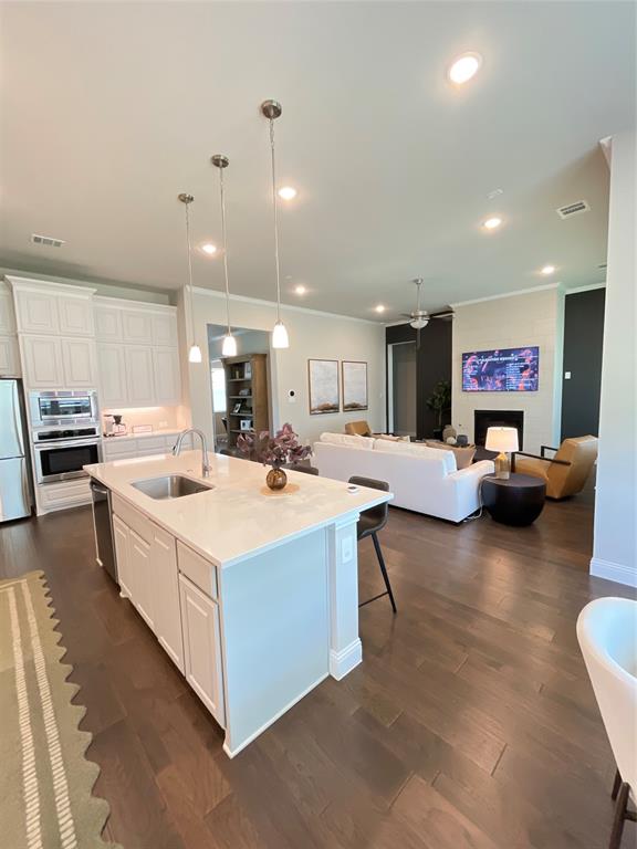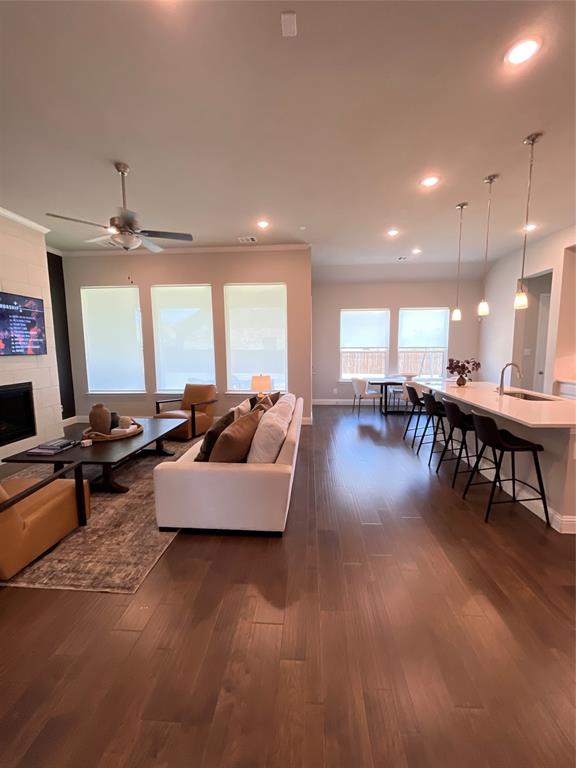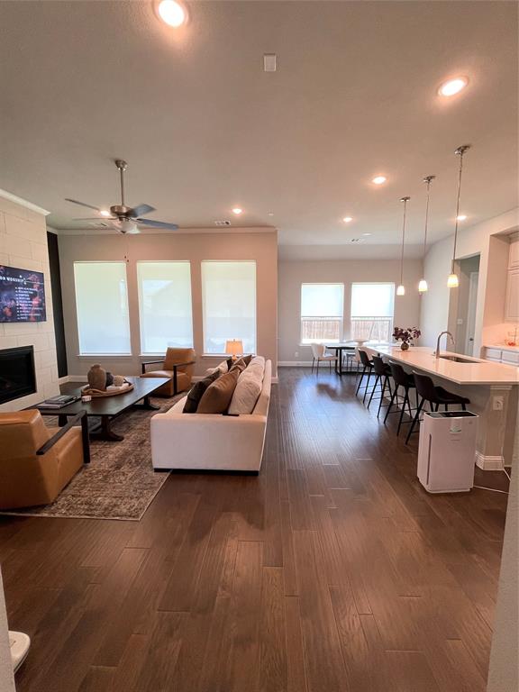 Welcome to this stunning move in ready 4-bedroom, 3-bathroom home offering 2,432 sq ft of luxury living on a prime corner lot across from a serene pond and lush green space. Step through the elegant entry into an open floor plan featuring soaring 8-foot doors, a cozy fireplace, and Hunter Douglas remote-powered shades throughout. The spacious kitchen and living area flow seamlessly, ideal for entertaining or relaxing. The large primary suite is a true retreat, boasting a spa-like bath and a custom walk-in closet by Inspired Closets. A dedicated office area adds functionality, perfect for remote work or study. The backyard is a blank slate ready for a pool or any oasis you decide. Enjoy beautiful landscaping that enhances the home’s curb appeal. With style, comfort, and convenience combined, this home is a rare find in a picturesque setting. 2.2 tax rate! No MUD or PID, and walking distance to the highly rated Johnson Elementary School!